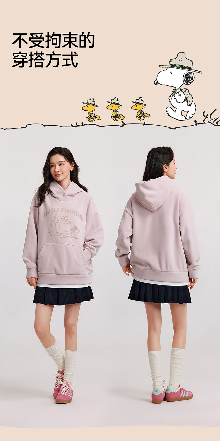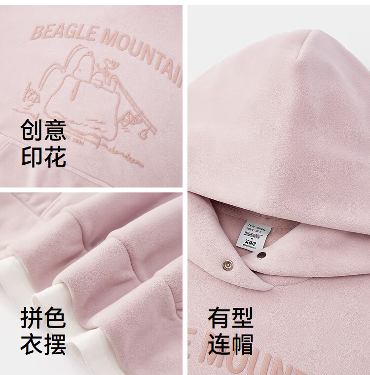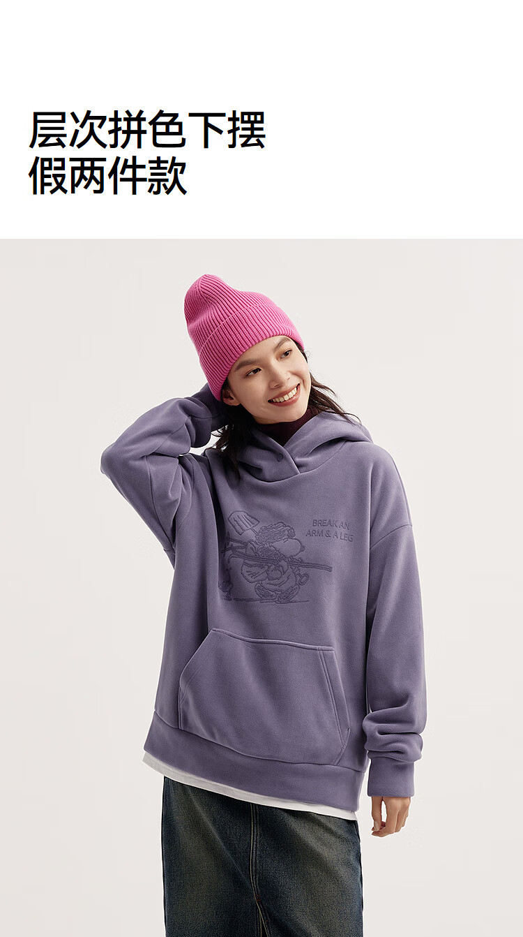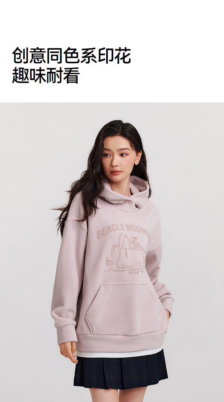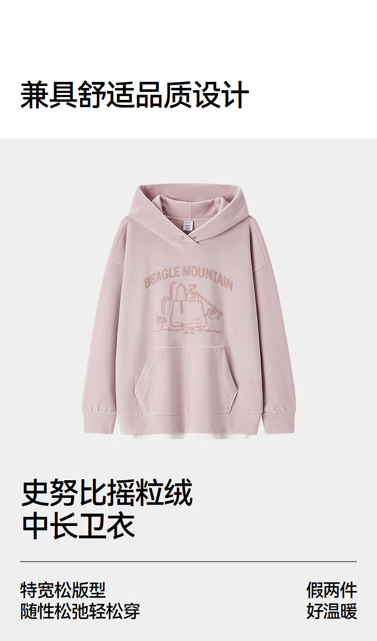 Semir Snoopy series sweatshirt women's mid-length fake two-piece pattern winter oversize polar fleece 101724116019