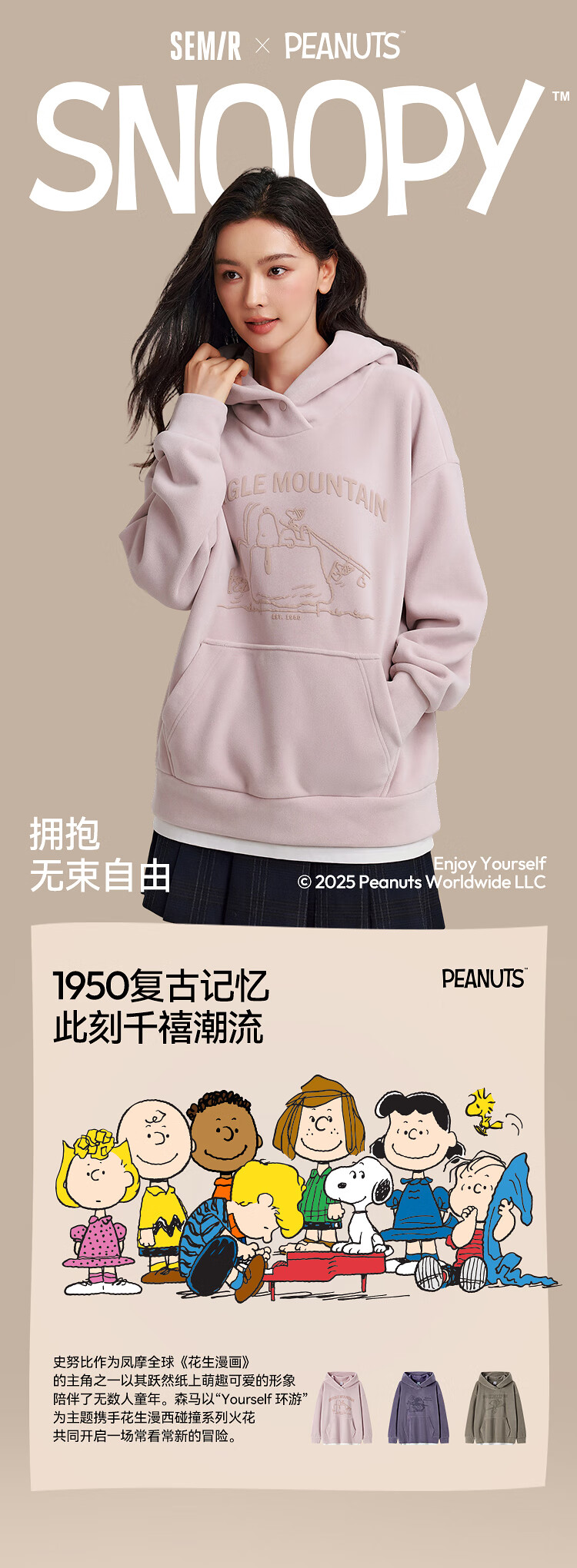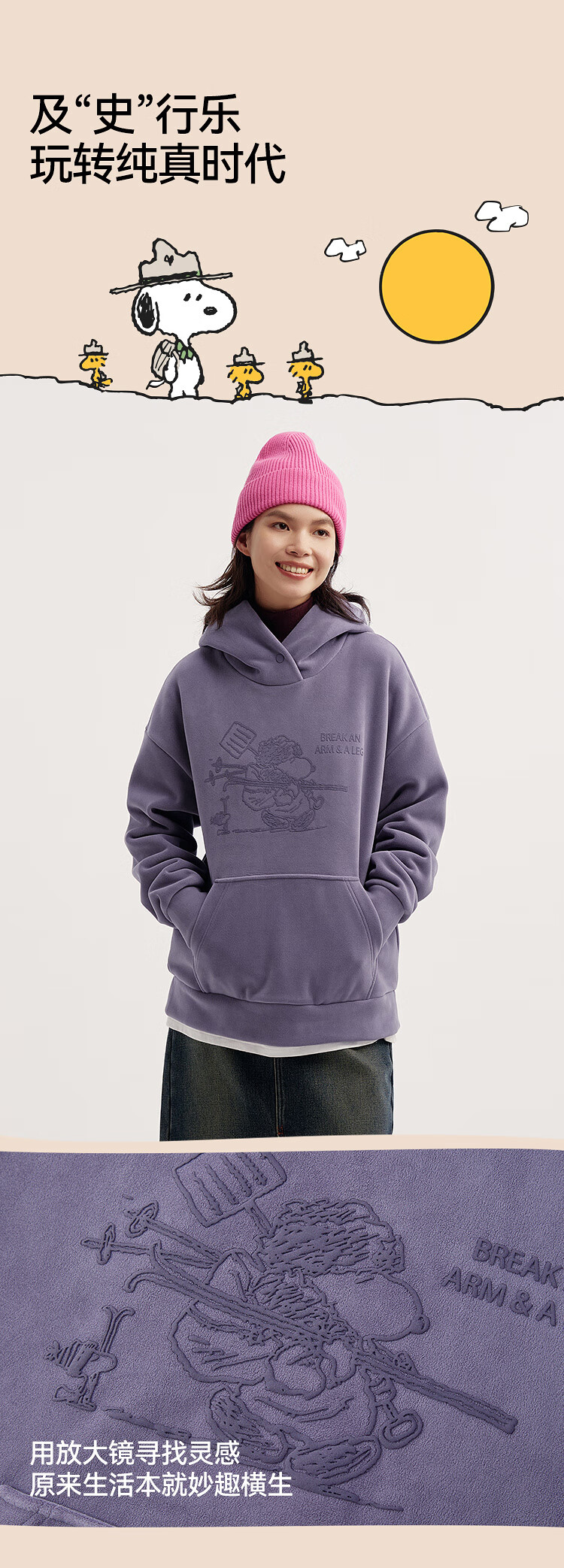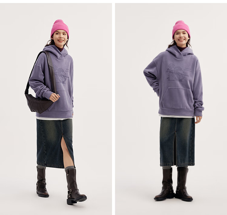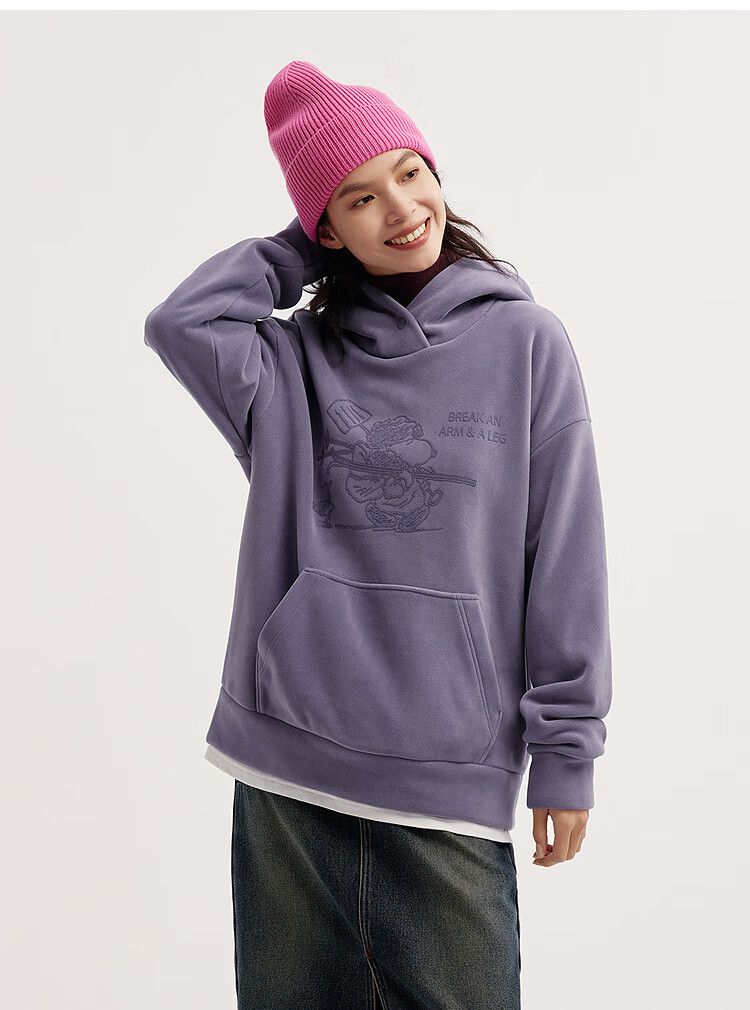 Semir Snoopy series sweatshirt women's mid-length fake two-piece pattern winter oversize polar fleece 101724116019