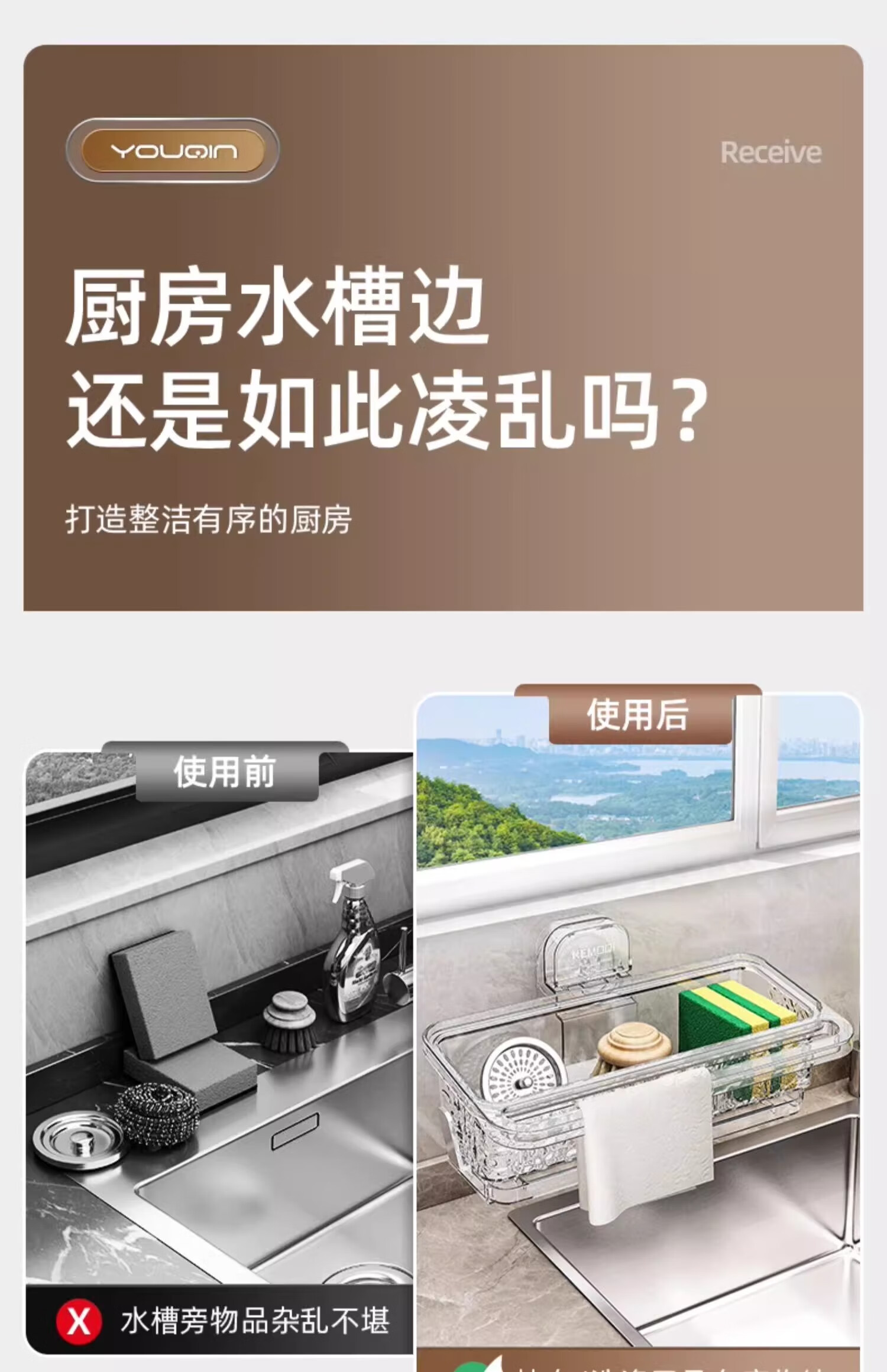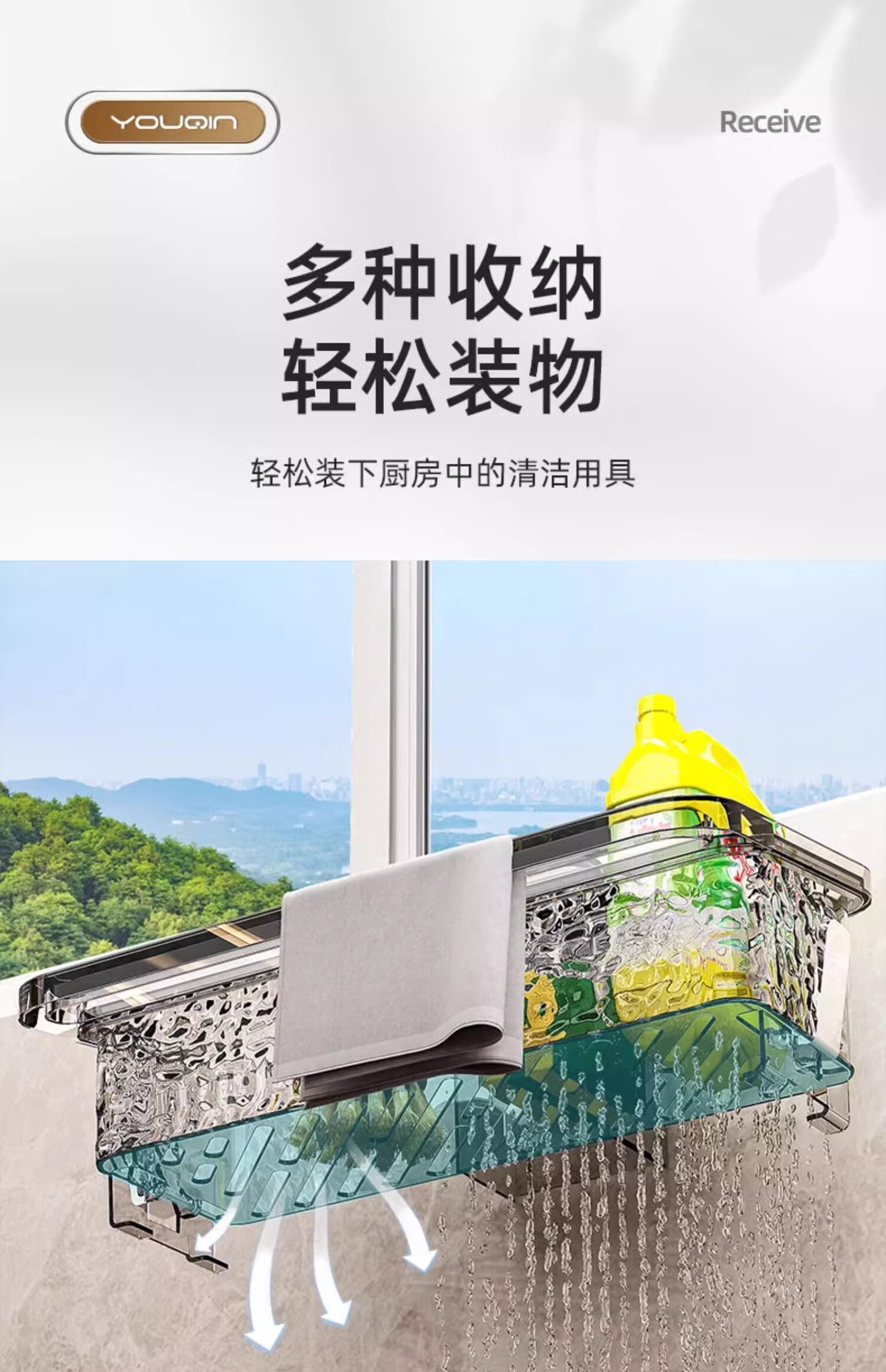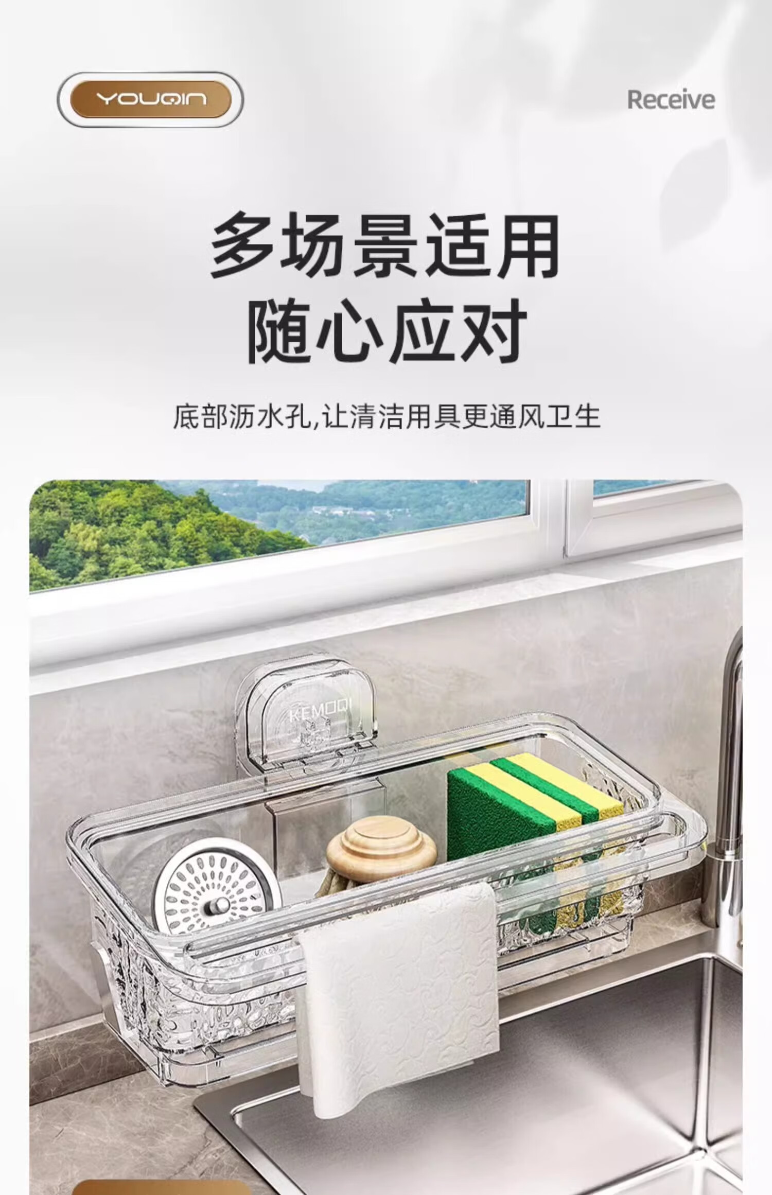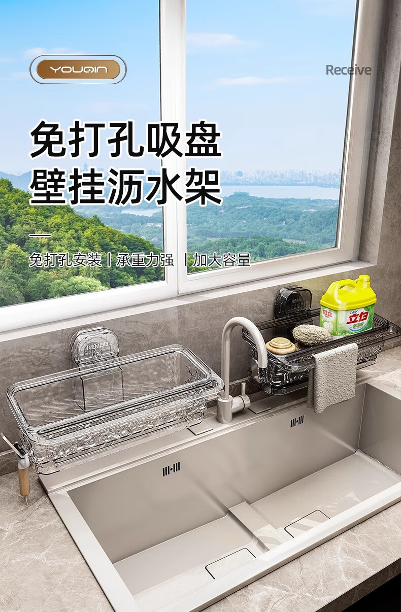 MUYA suction cup wiper rack kitchen multifunctional sink drain rack no punching dishcloth wall hanging storage rack