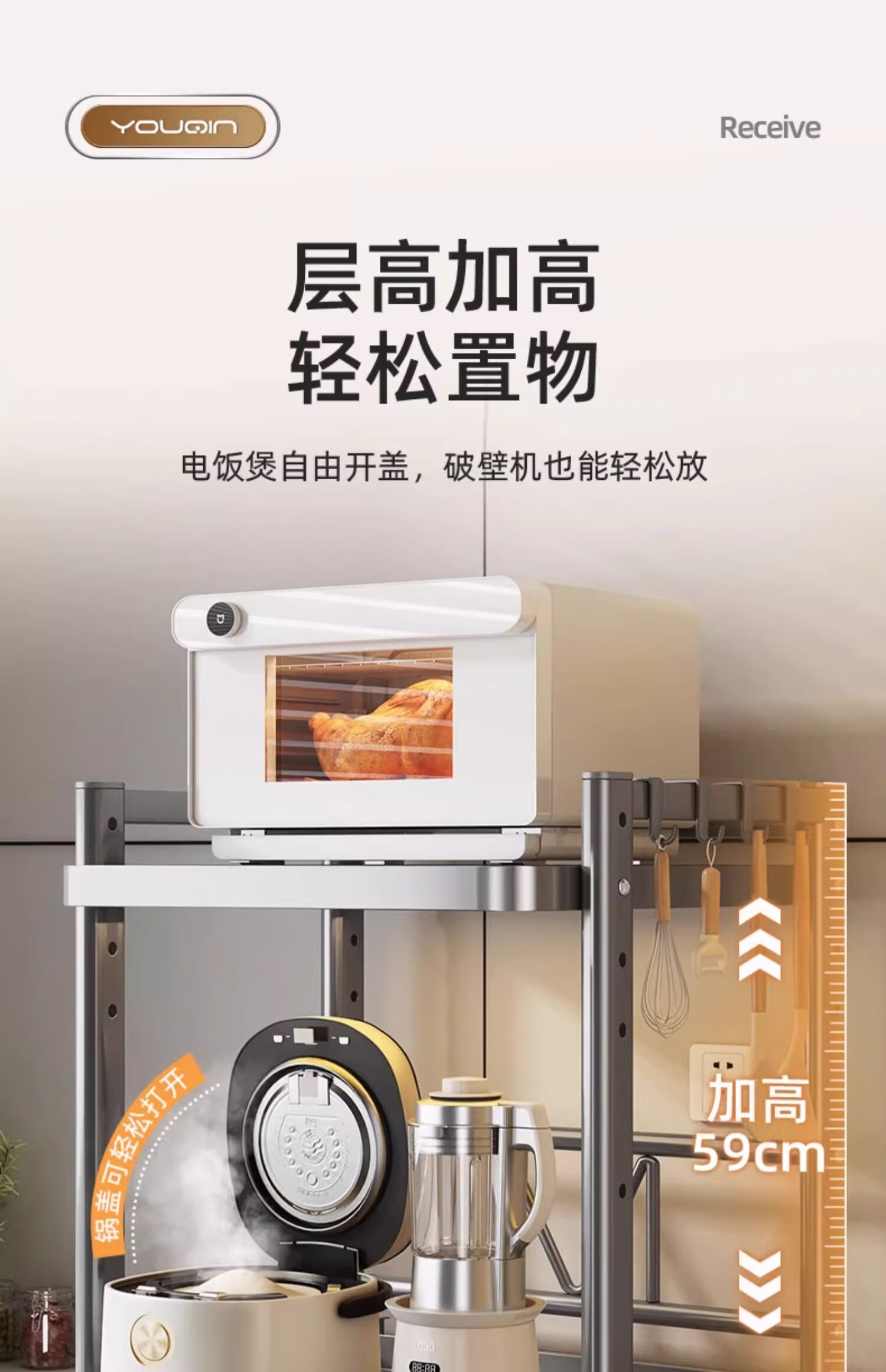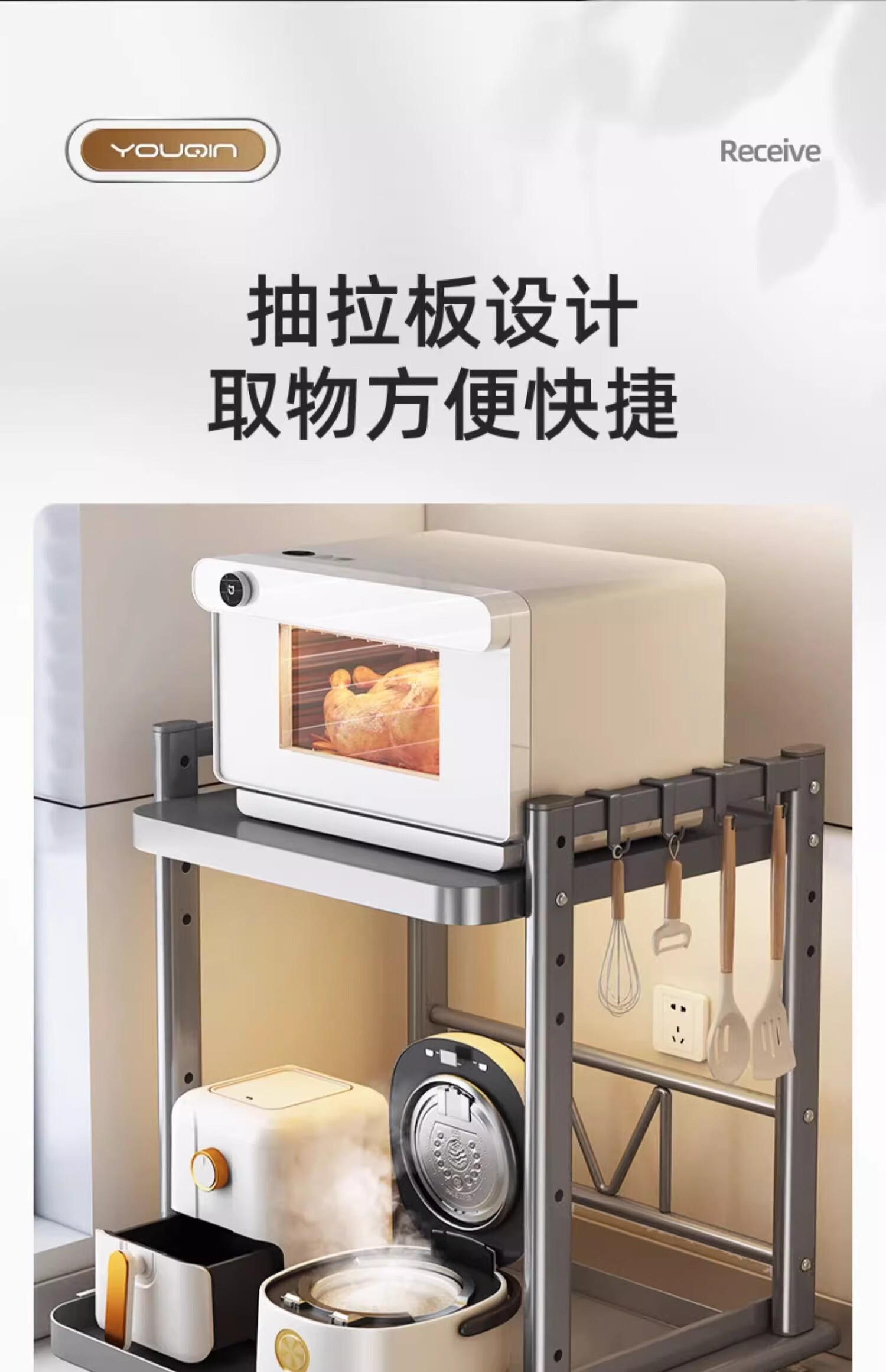 Youqin microwave oven storage rack kitchen multi-functional countertop rice cooker pot oven storage rack integrated pull-out type