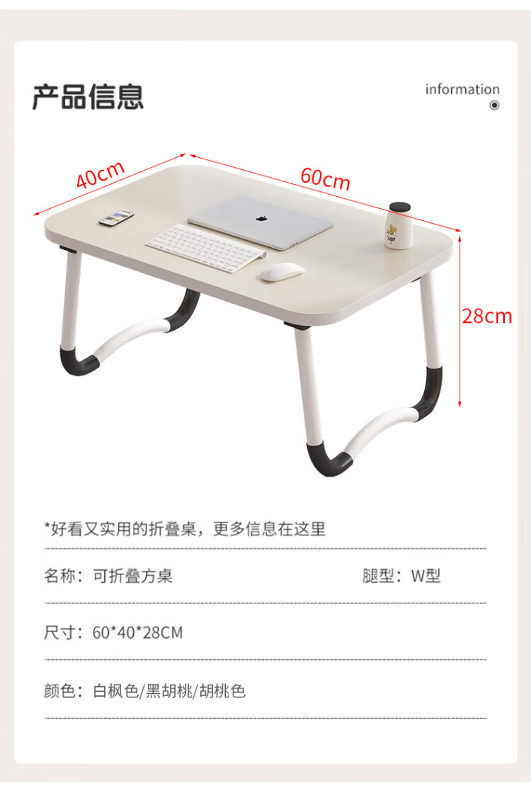 Coolin solid wood bed computer desk folding desk student dormitory study table notebook small table dark walnut 60*40