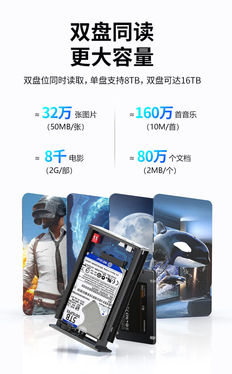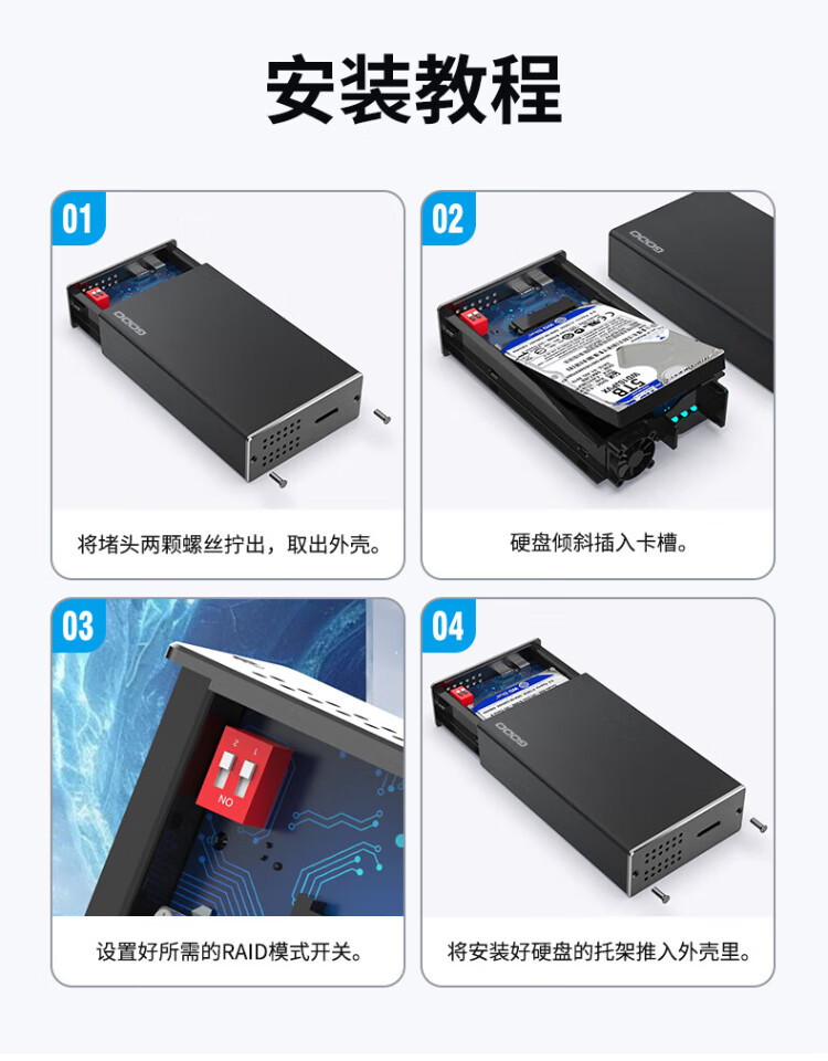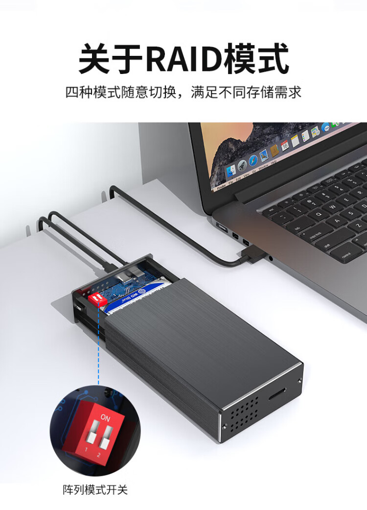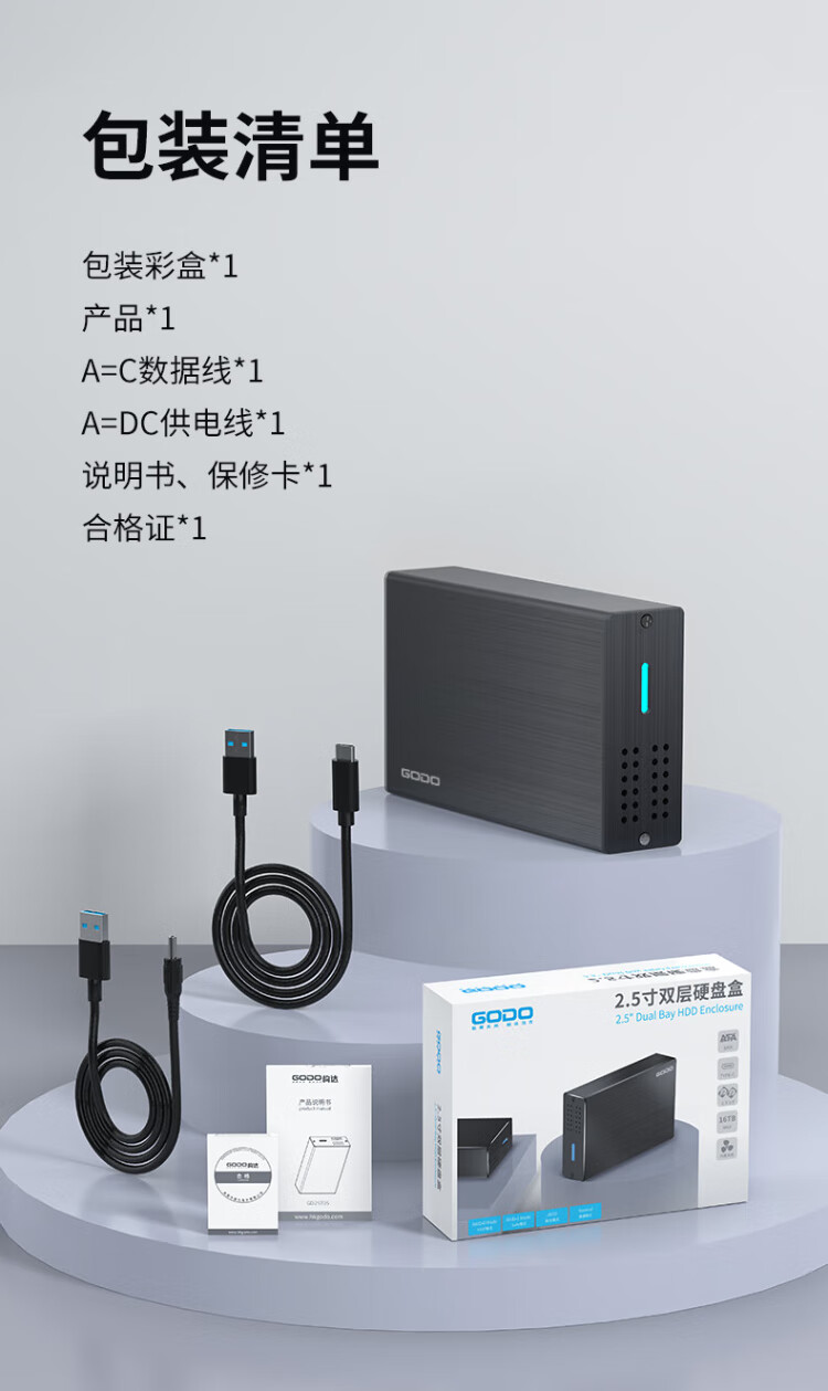 GODO磁盘阵列柜sata硬盘盒子2.5英寸双盘RAID外接Tpyec口usb3.0外置机械固态适用台式机笔记本