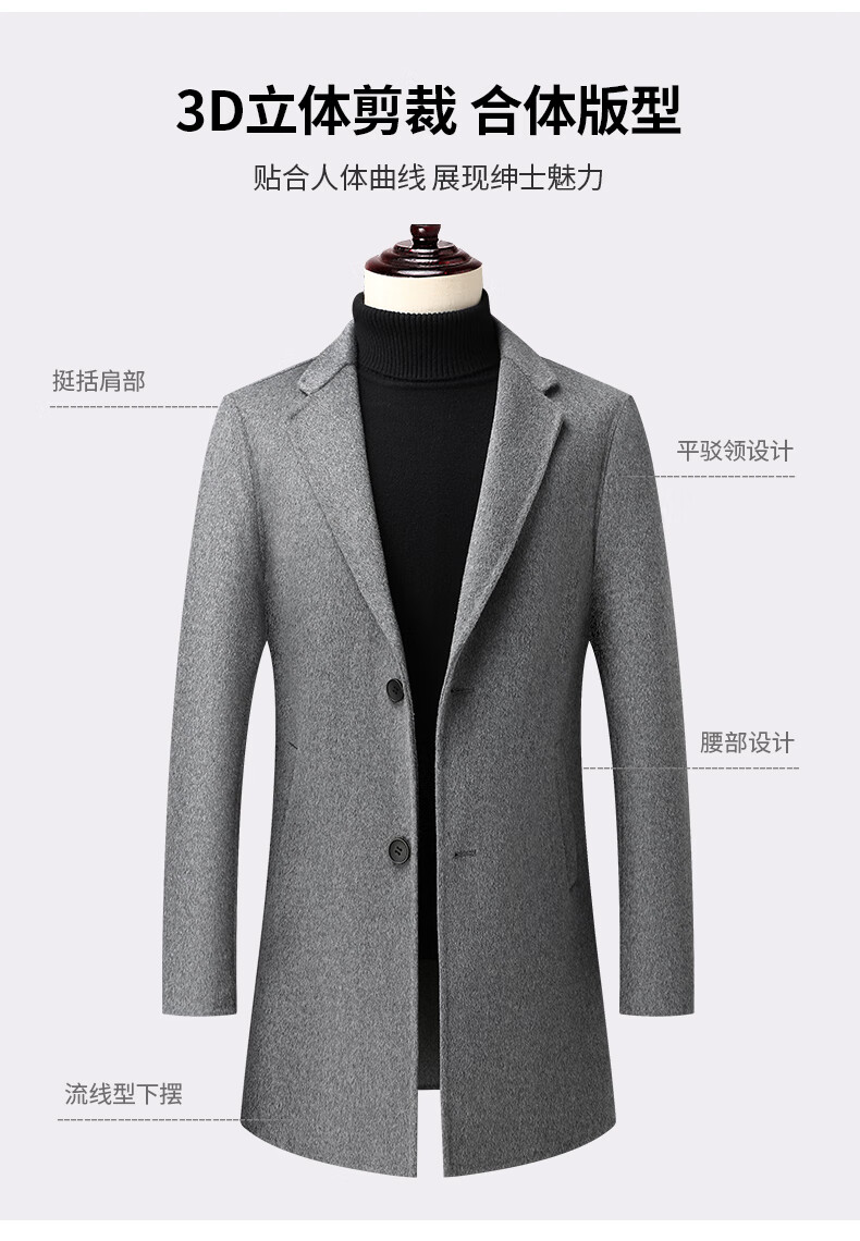 Yalu 100% sheep wool pure wool double-sided woolen coat men's windbreaker mid-length autumn and winter woolen coat