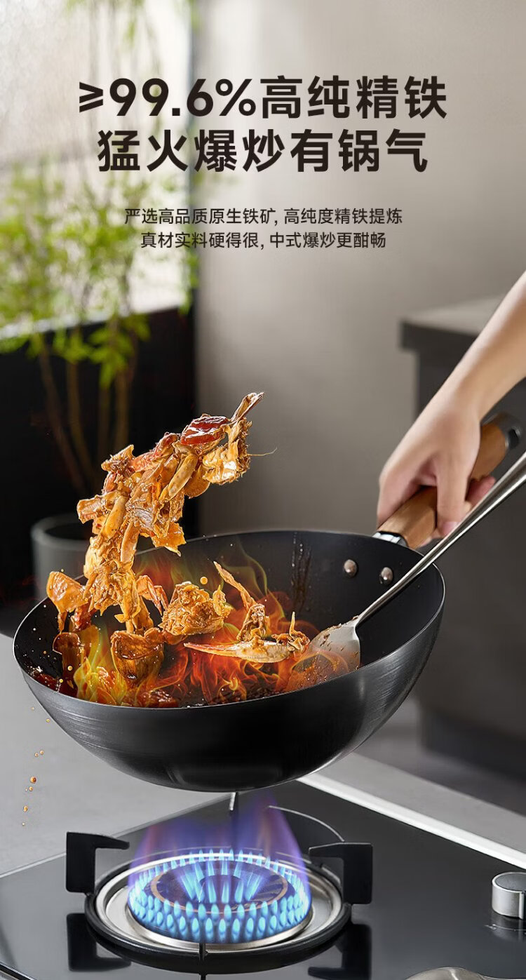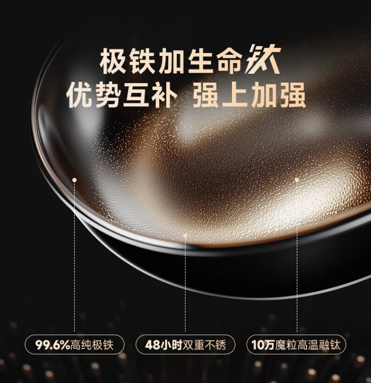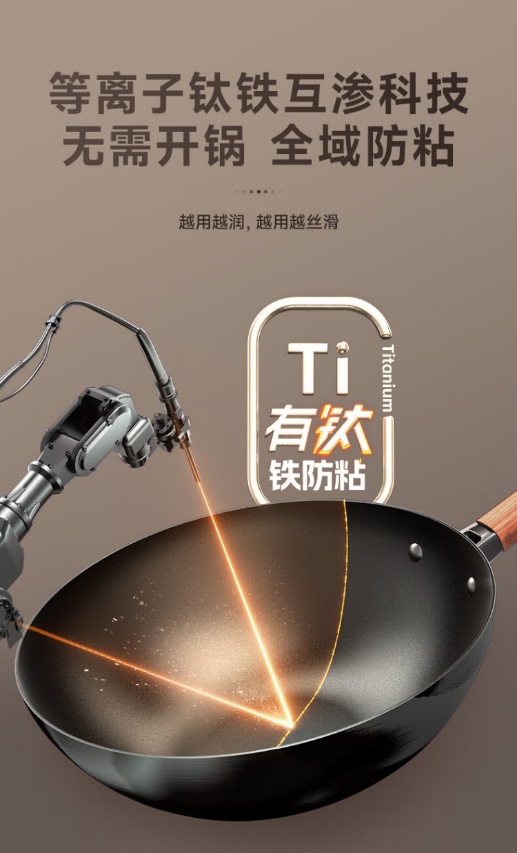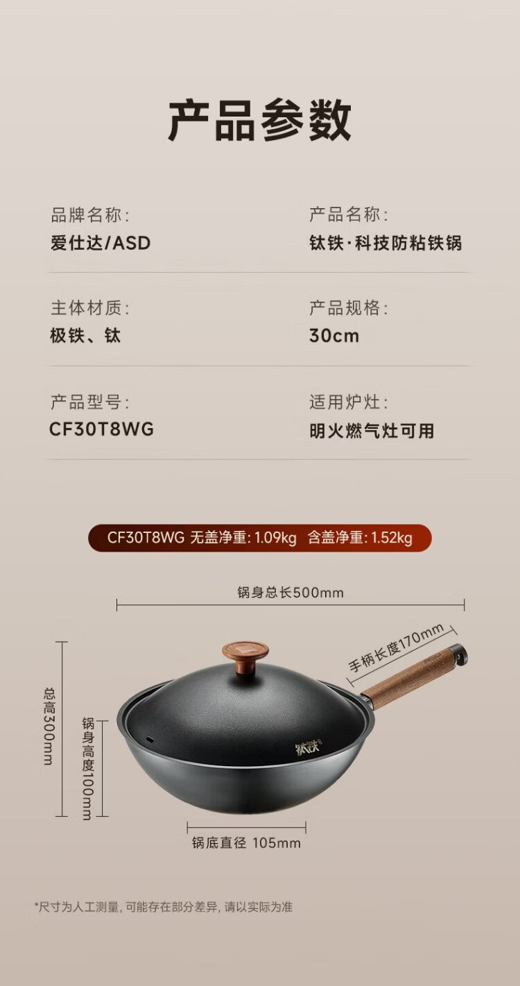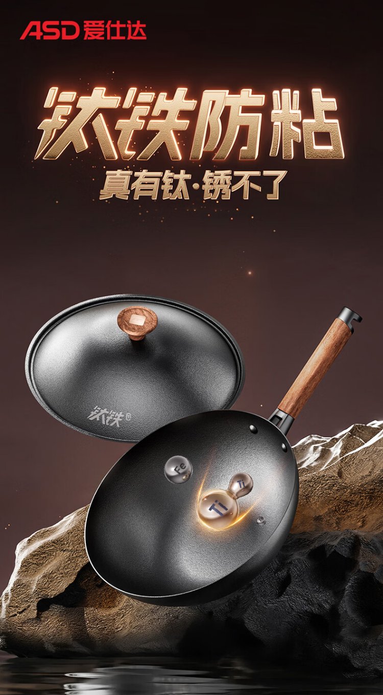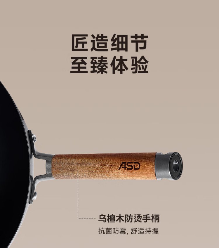 ASD wok, fluorine-free coated titanium iron non-stick wok, titanium iron wok, stainless gas, 30cm suitable for 3-5 people