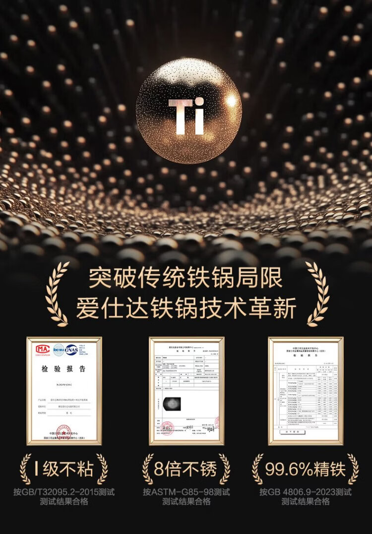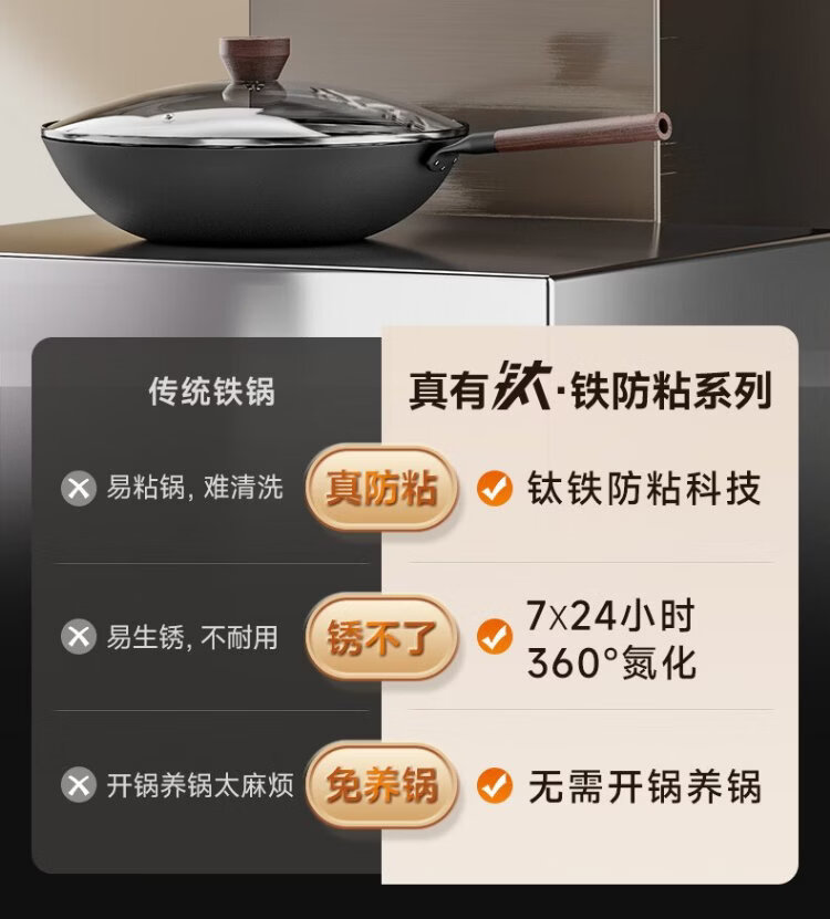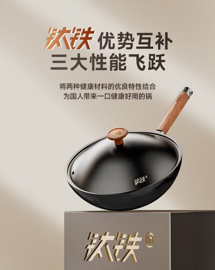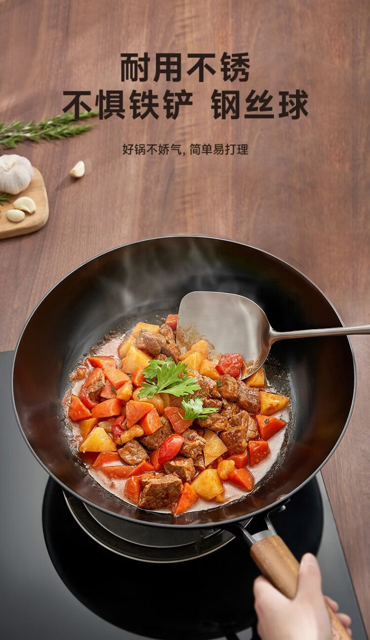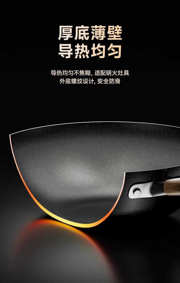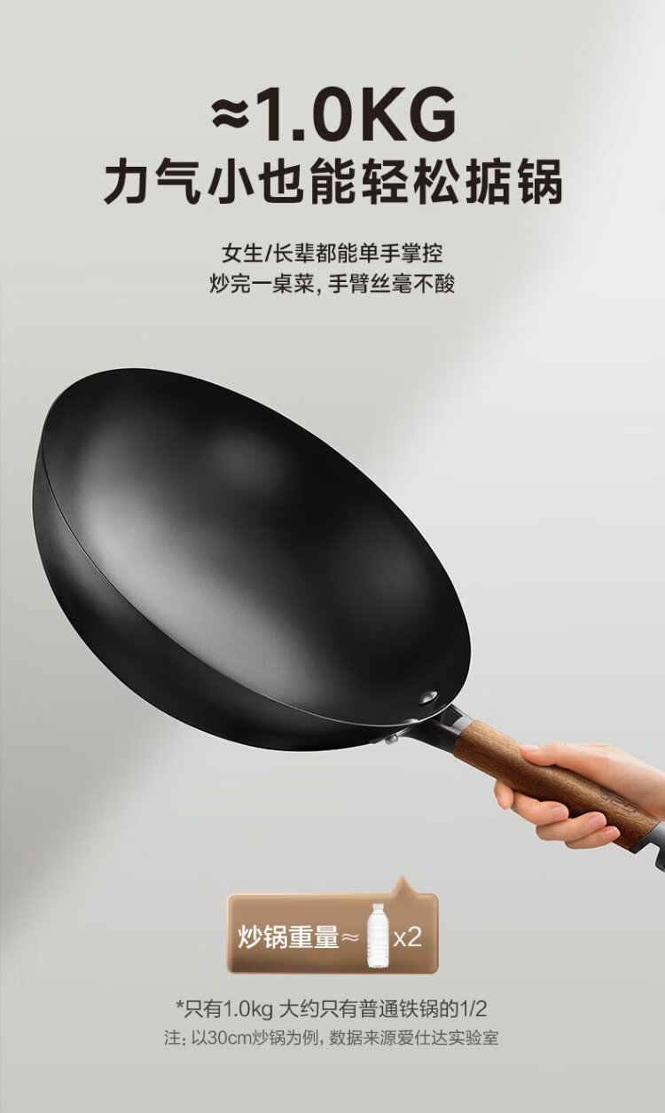 ASD wok, fluorine-free coated titanium iron non-stick wok, titanium iron wok, stainless gas, 30cm suitable for 3-5 people