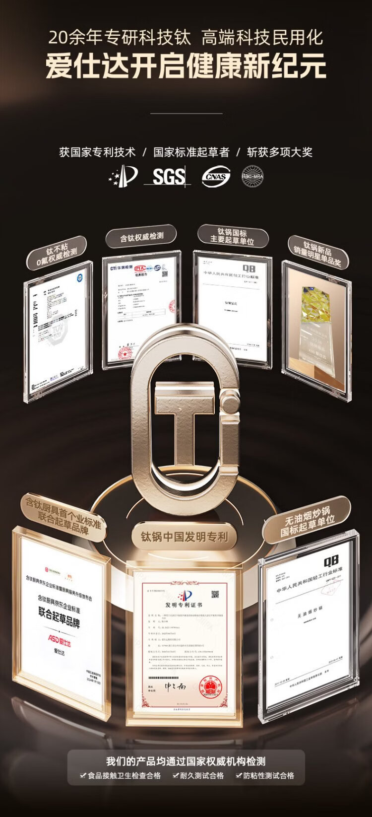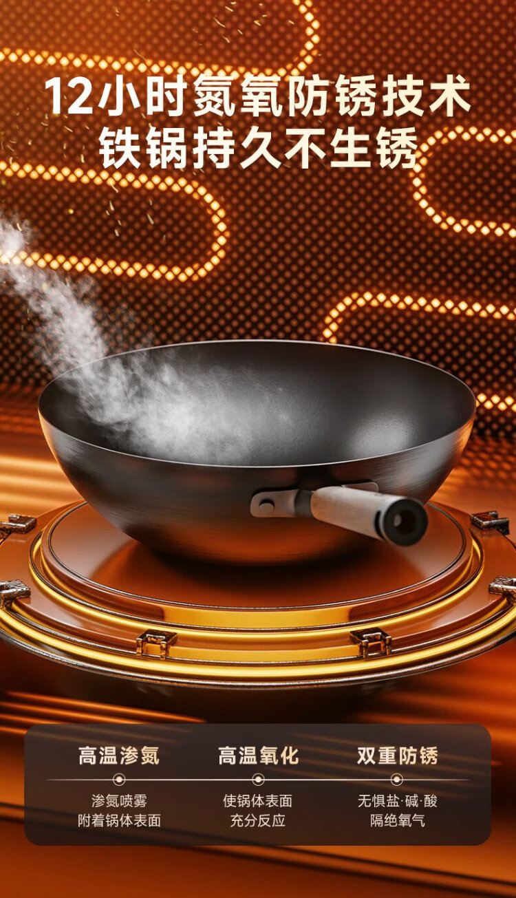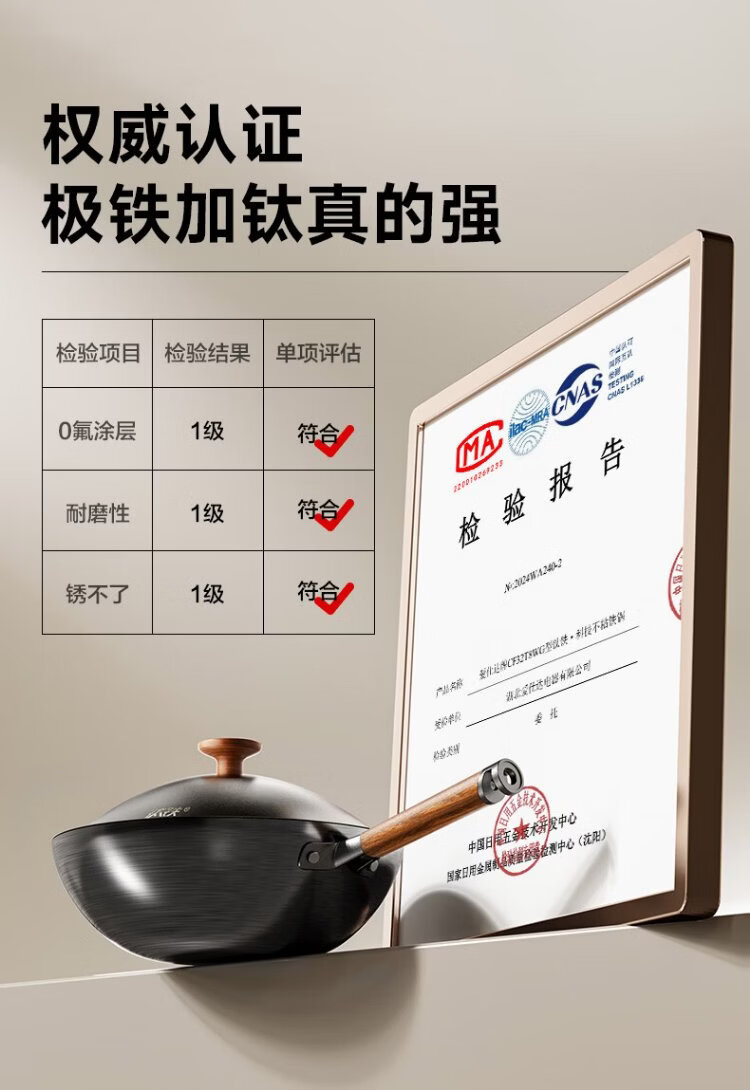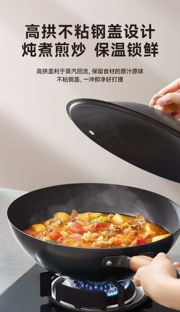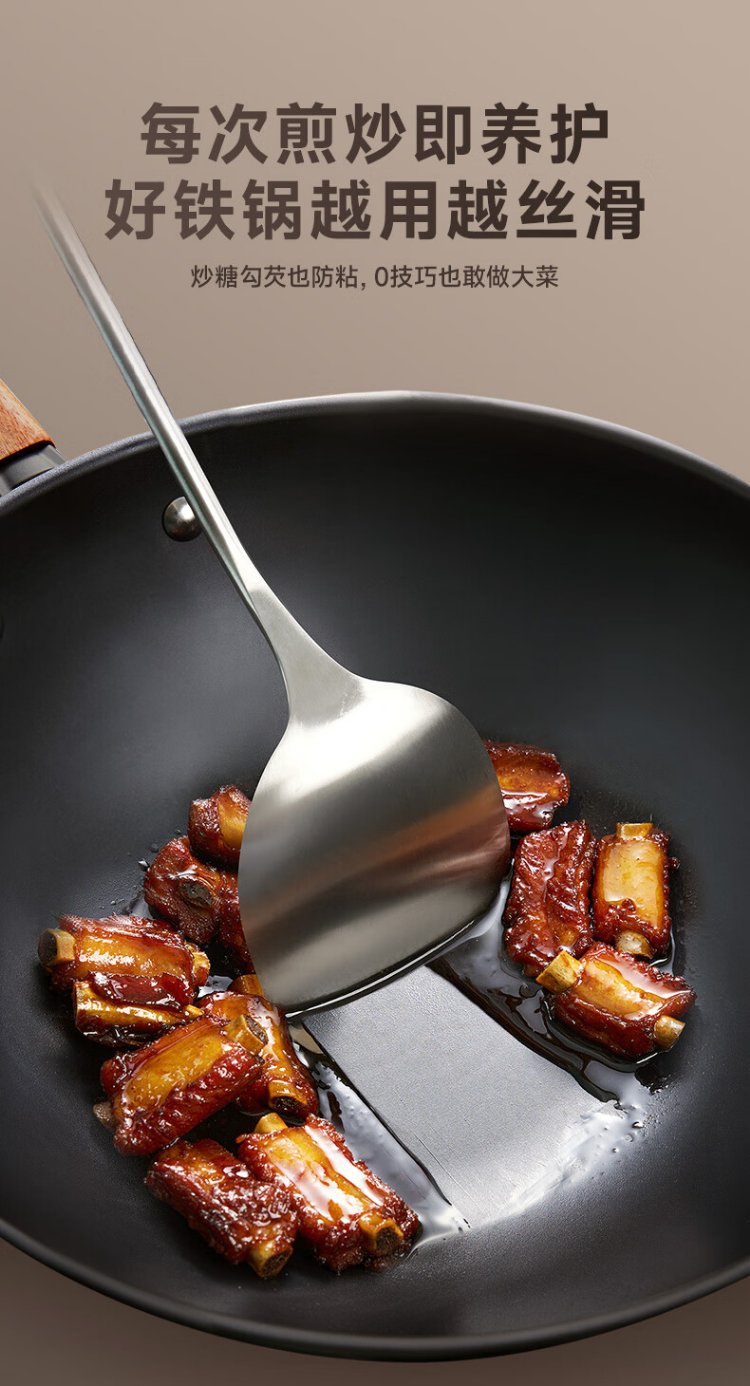 ASD wok, fluorine-free coated titanium iron non-stick wok, titanium iron wok, stainless gas, 30cm suitable for 3-5 people