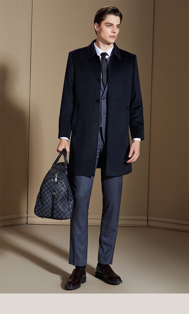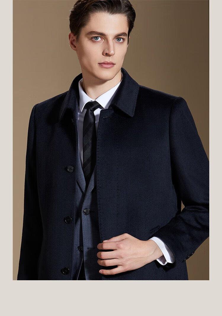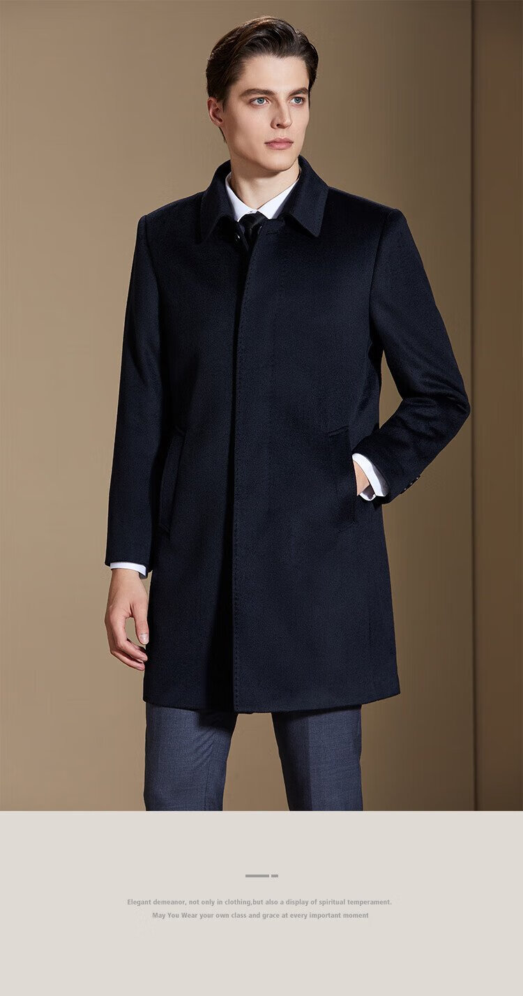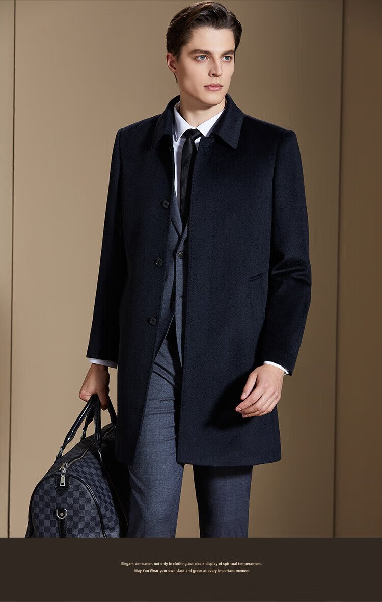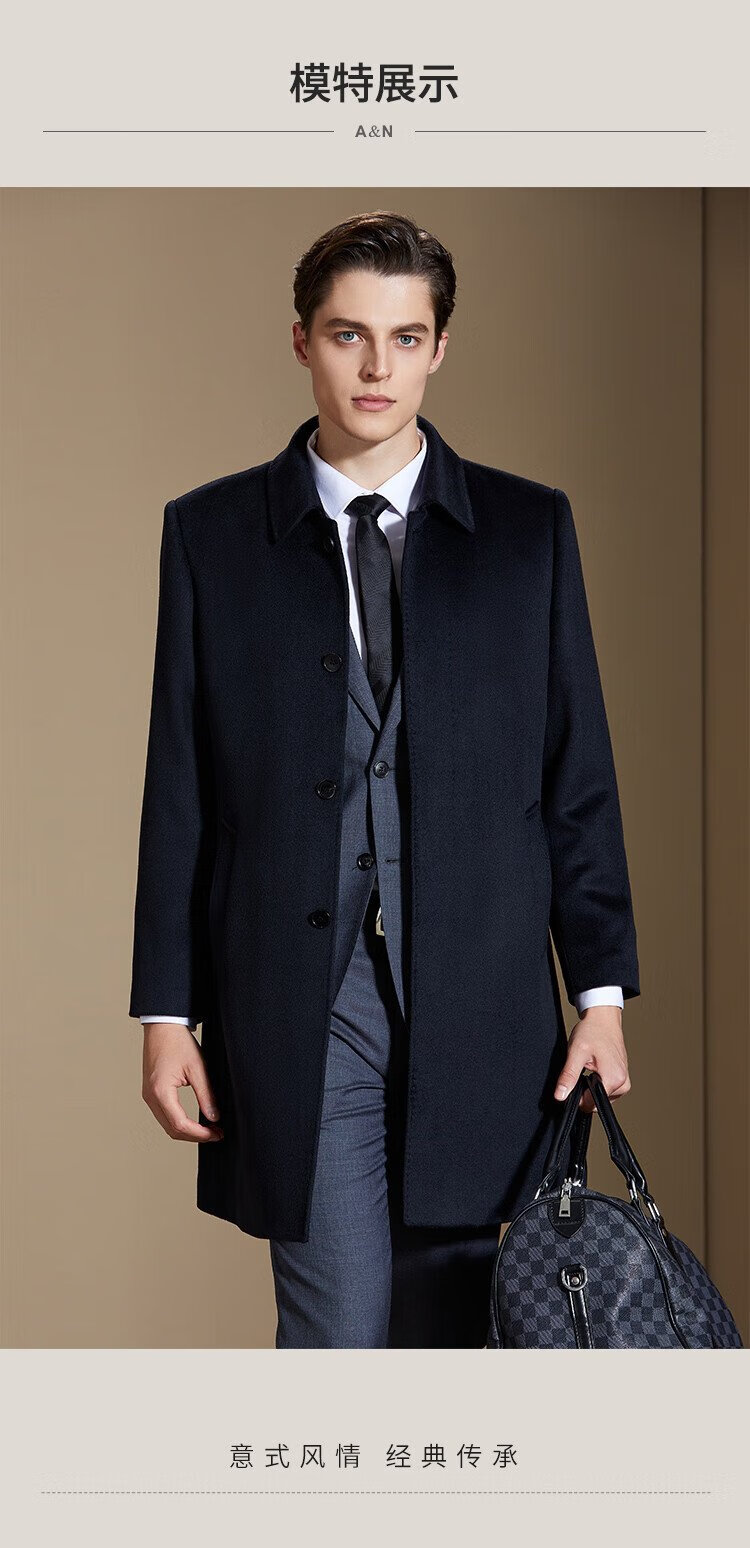 Antonio mulberry silk & cashmere & wool light luxury lapel long autumn and winter men's business casual woolen warm jacket