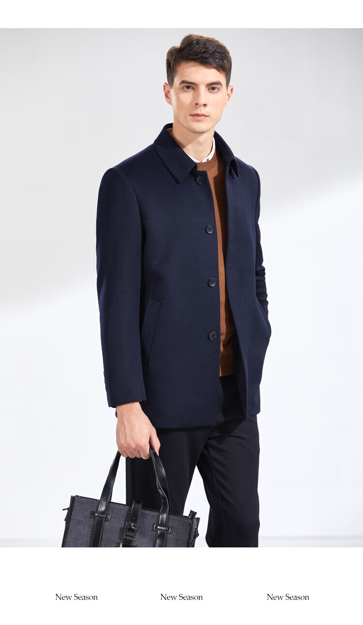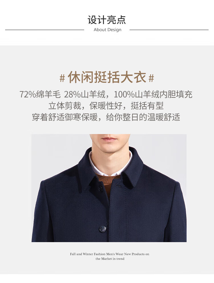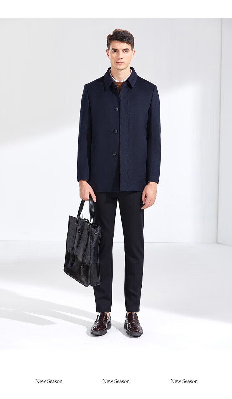 Antonio pure cashmere lining & removable thickened mid-length cashmere wool coat men's business woolen coat
