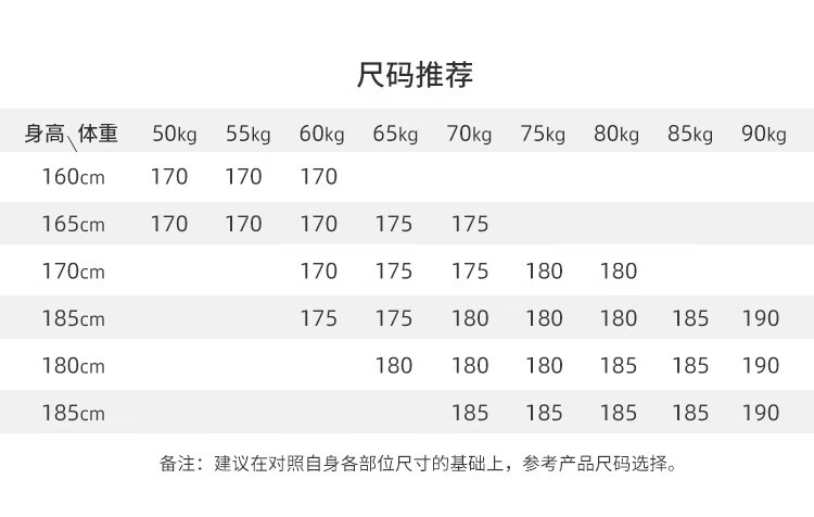 China (cm) 165 / 88-90 170 / 96-98 175 / 108-110 180 / 118-122 185 / 126-130