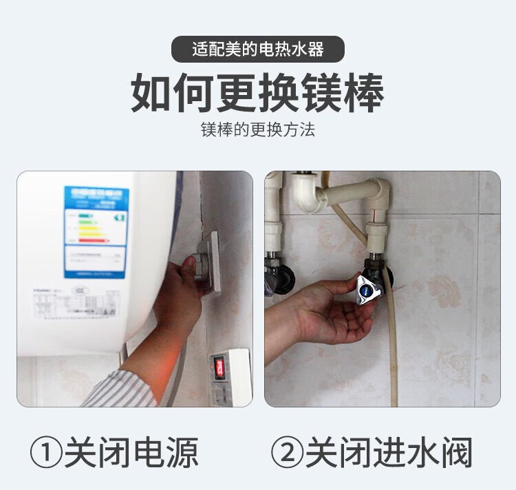 Shuangwei is suitable for Midea electric water heater magnesium rod 60 liters household water heater magnesium rod universal drainage and descaling anode rod accessories 60L F-MM60