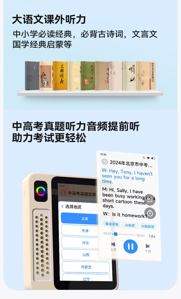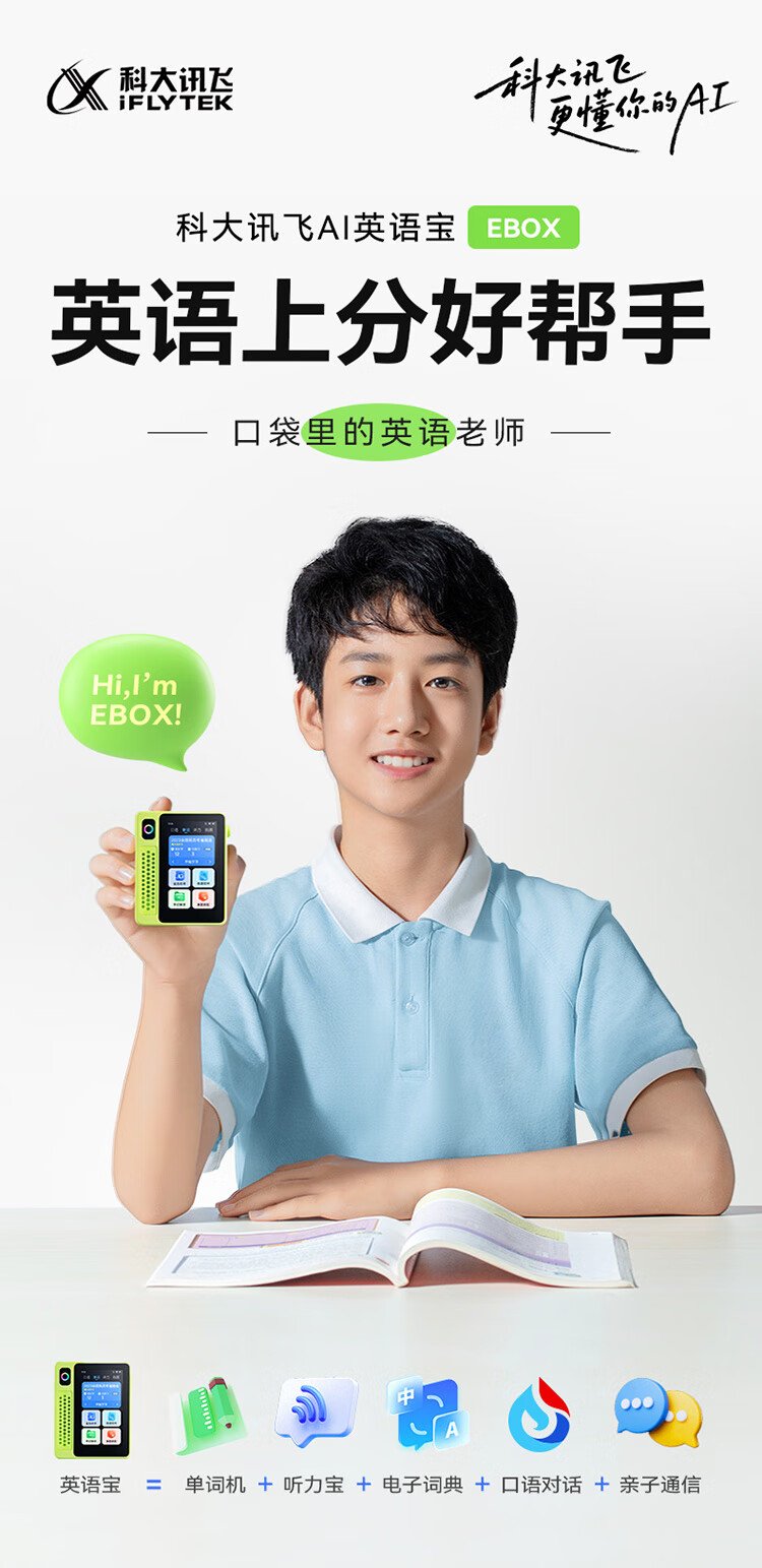IFLYTEK AI English Treasure EBOX Portable Learning Machine Hearing Treasure English Word Machine Walkman English Learning Artifact Accompanying Learning Machine Research Learning Machine Photography Learning Machine 64G