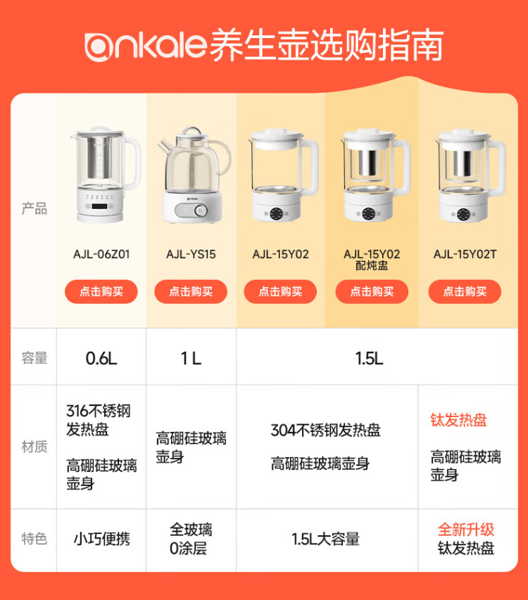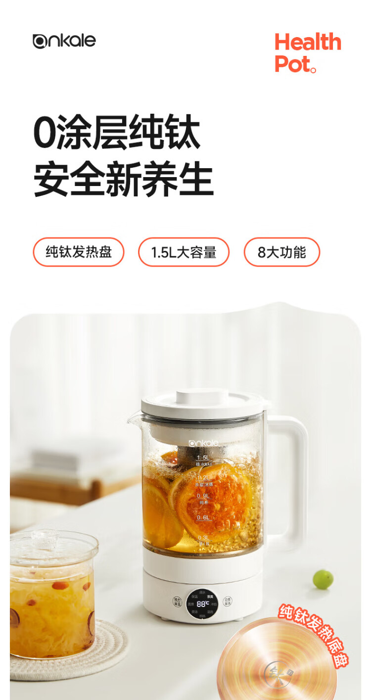Ankale health kettle 1.5L fully automatic constant temperature kettle 0-coated pure titanium borosilicate glass household large-capacity office tea and hot water all-in-one machine AJL-15Y02