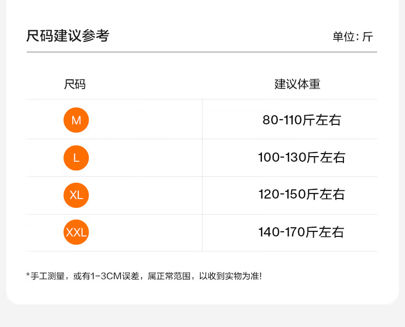 China (cm) 165 / 88-90 170 / 96-98 175 / 108-110 180 / 118-122 185 / 126-130