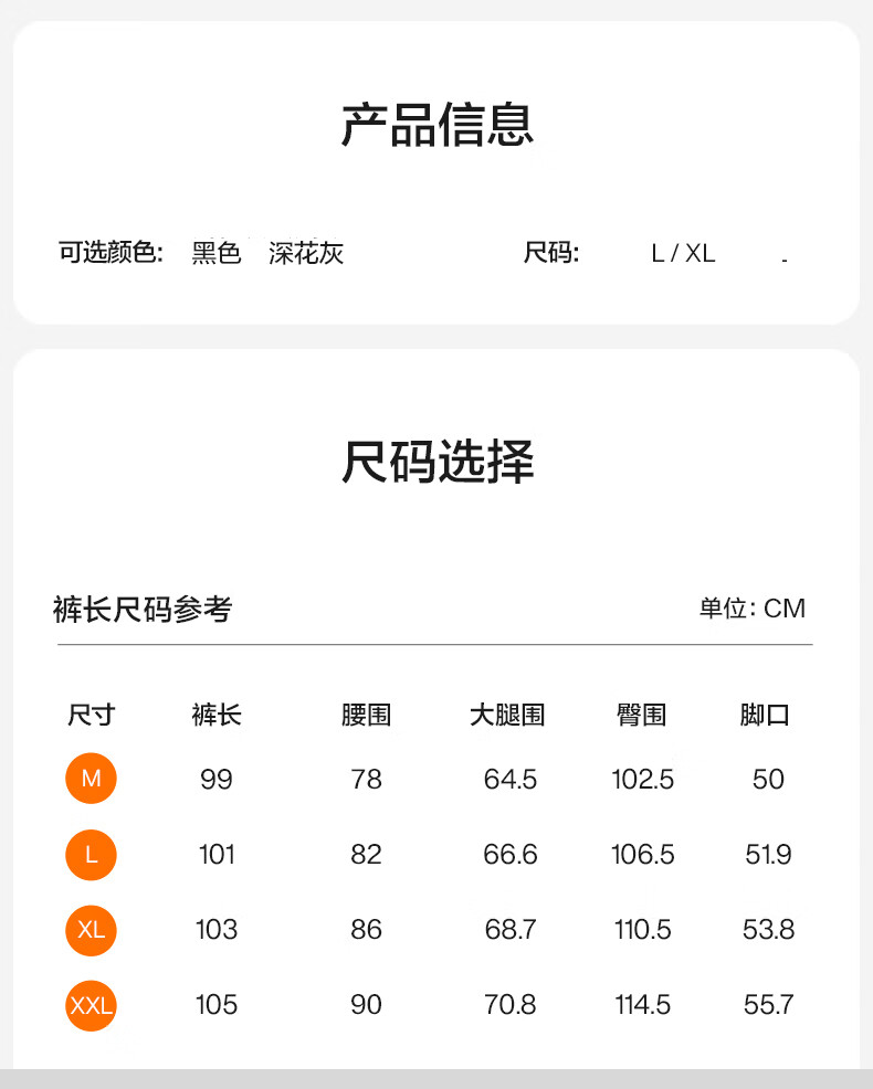 Outseam (cm) 99 cm 101.5 cm 104 cm 106.5 cm 109 cm