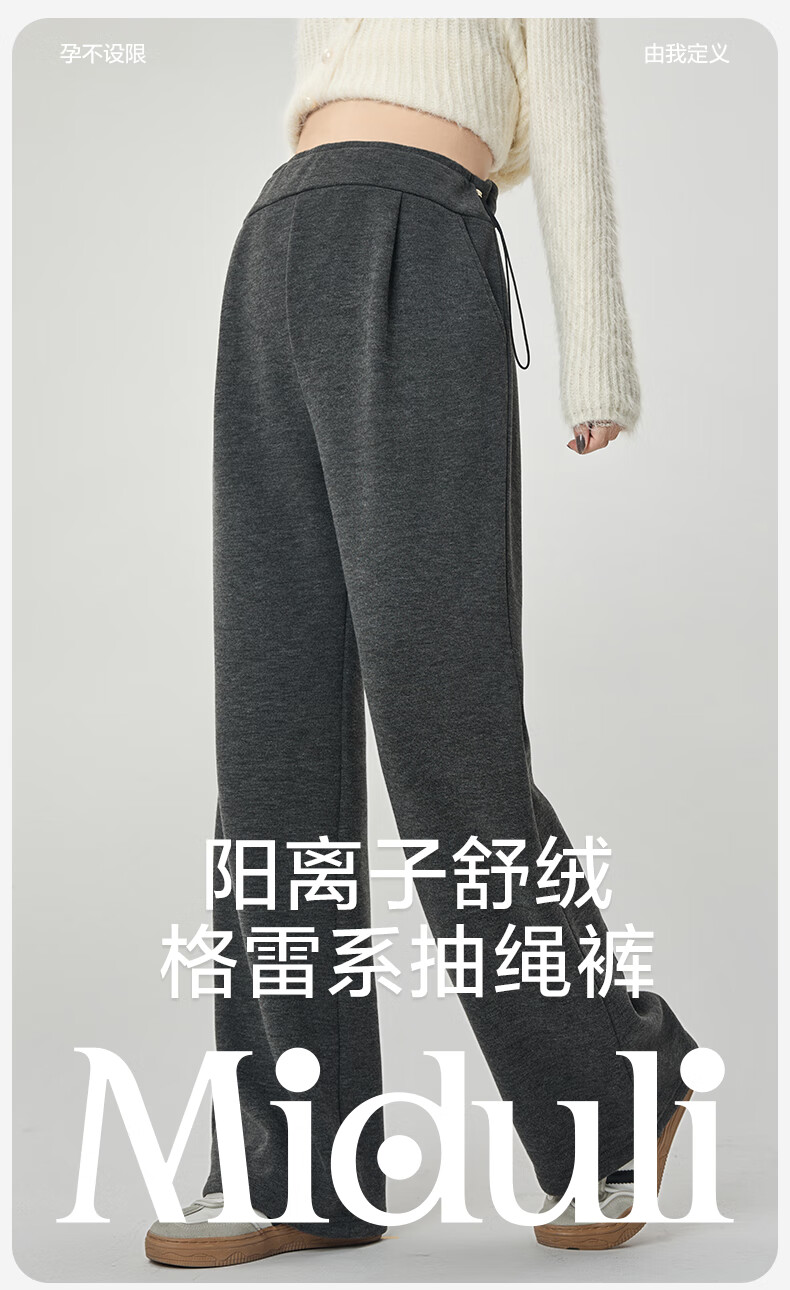 Miduli maternity pants winter outer wear wide-leg pants plus velvet belly straight casual pants maternity wear winter dark floral gray L