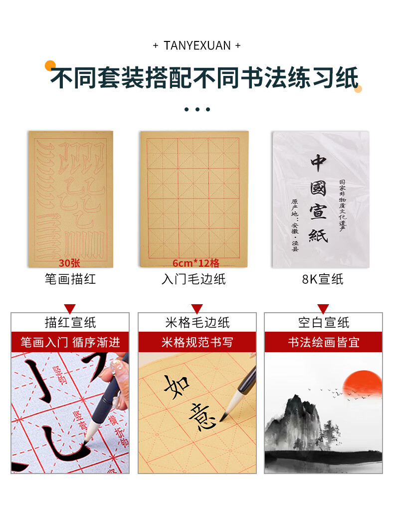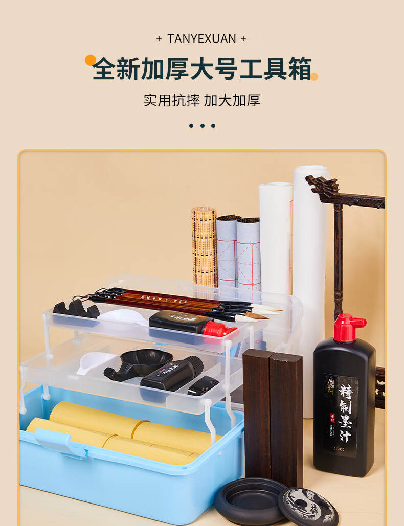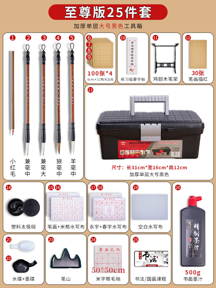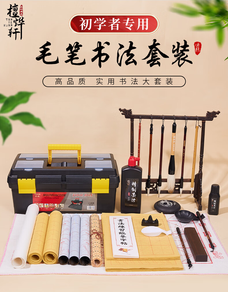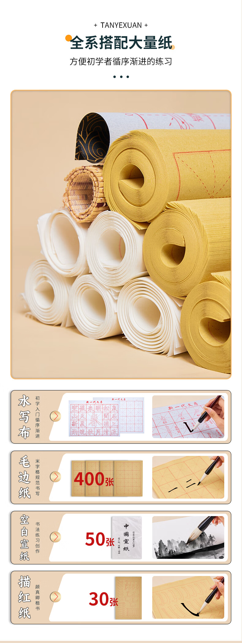 Tan Yexuan Study Four Treasures Set and Calligraphy Brush Set Water Writing Cloth Rice Paper Copying Paper Ruler Ink Felt Essential Pen, Ink, Paper and Inkstone Complete Set for the Mid-Autumn Festival Supreme 25-piece Set