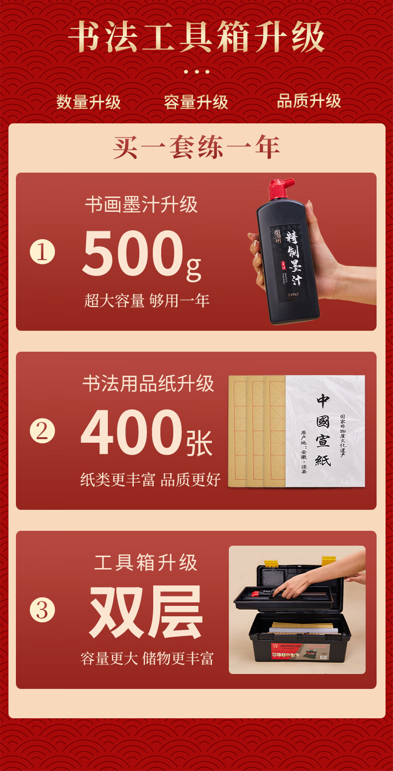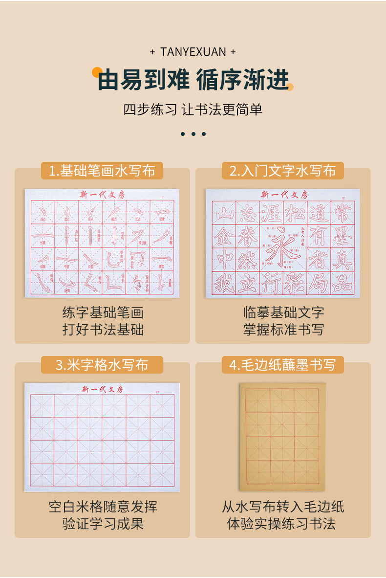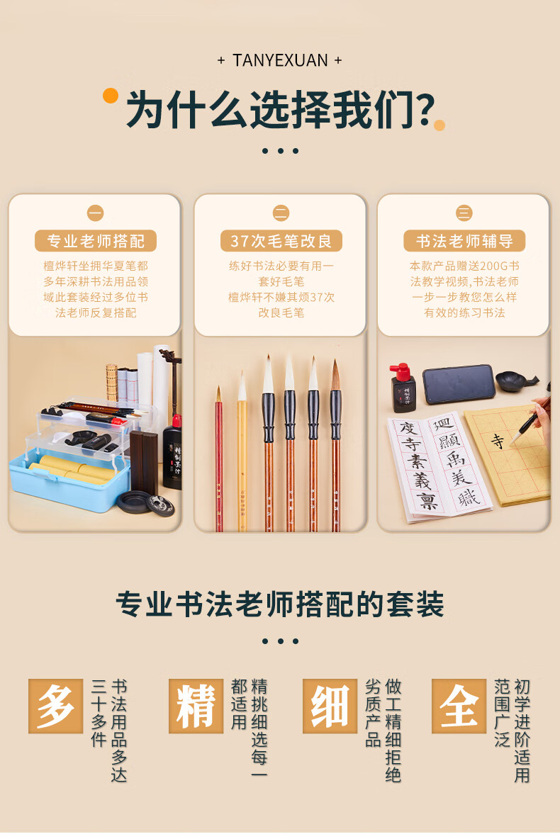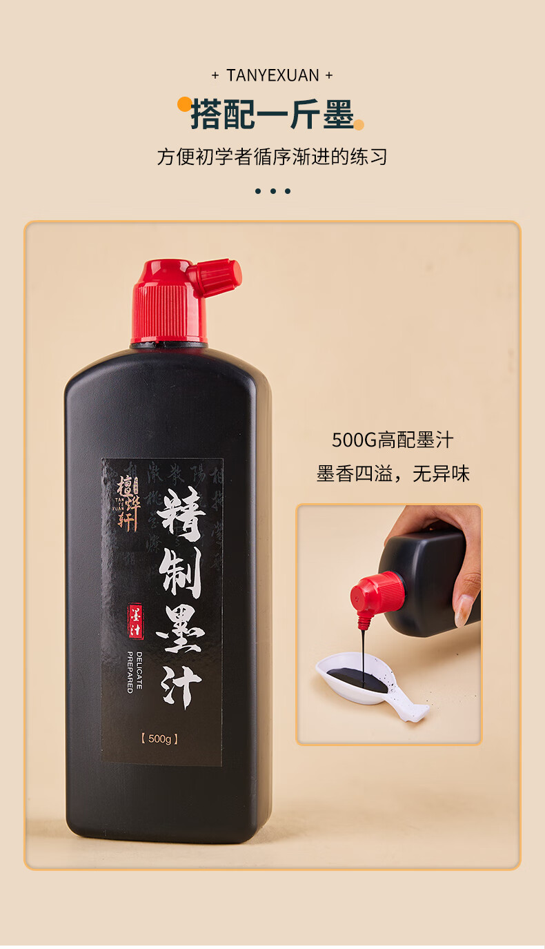 Tan Yexuan Study Four Treasures Set and Calligraphy Brush Set Water Writing Cloth Rice Paper Copying Paper Ruler Ink Felt Essential Pen, Ink, Paper and Inkstone Complete Set for the Mid-Autumn Festival Supreme 25-piece Set
