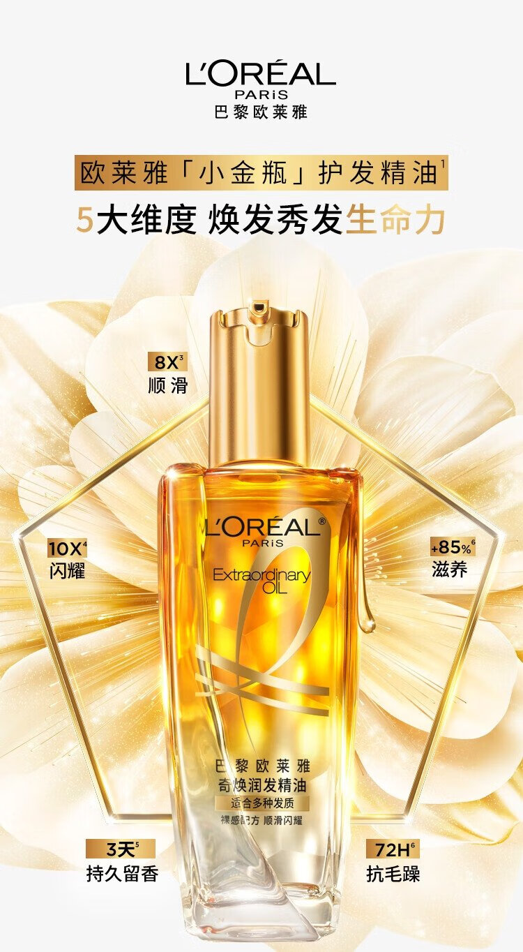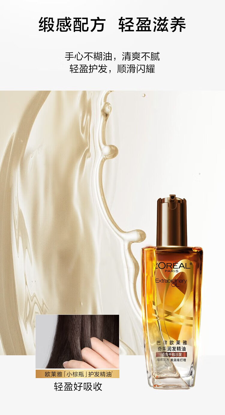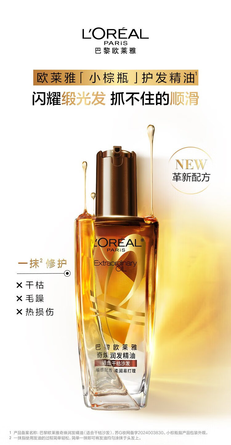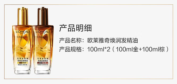 L'Oreal Qihuan Hair Care Oil (100ml Gold + 100ml Brown) No-wash Women's Repair Repair to Improve Frizz and Dryness