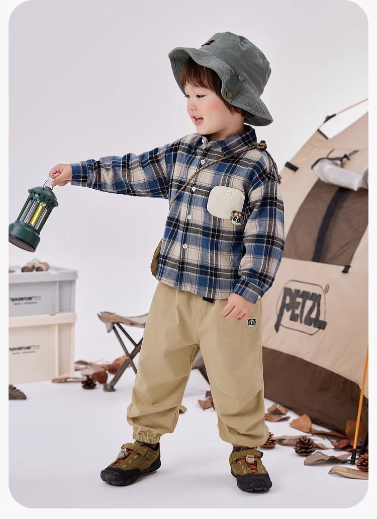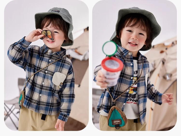 Dudu boys pure cotton plaid shirt autumn baby long-sleeved tops stylish children's polo shirt children's clothing blue 110