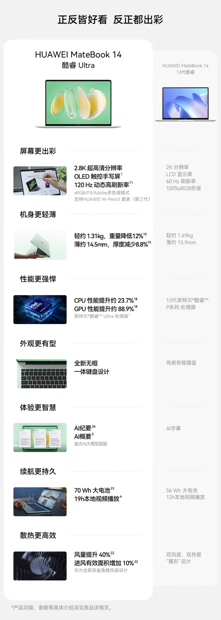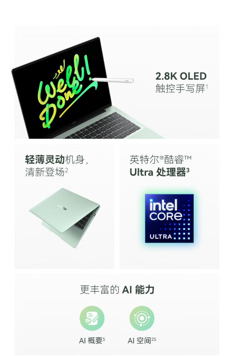 Huawei MateBook 14 Core Ultra Thin and Light Laptop 2.8K OLED Touch Screen Ultra 5 16G 1T Wild Green