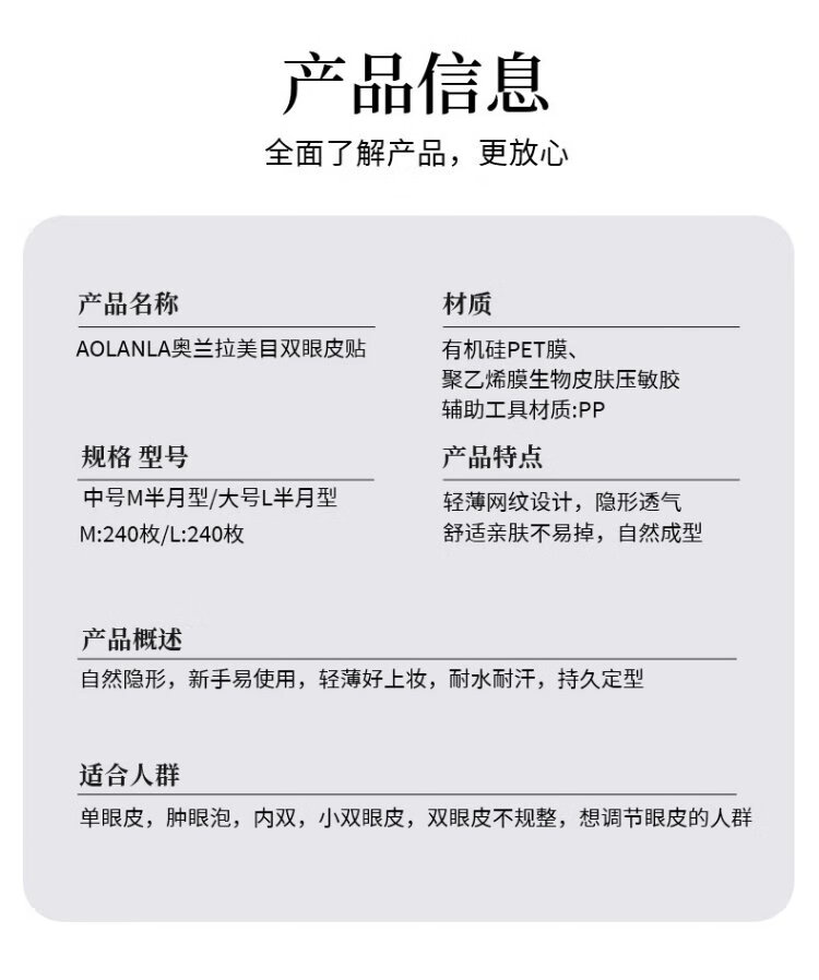 AOLANLA double eyelid stickers, simulated lace, thin, traceless, natural, invisible and non-warping, men and women, 240 stickers, size M