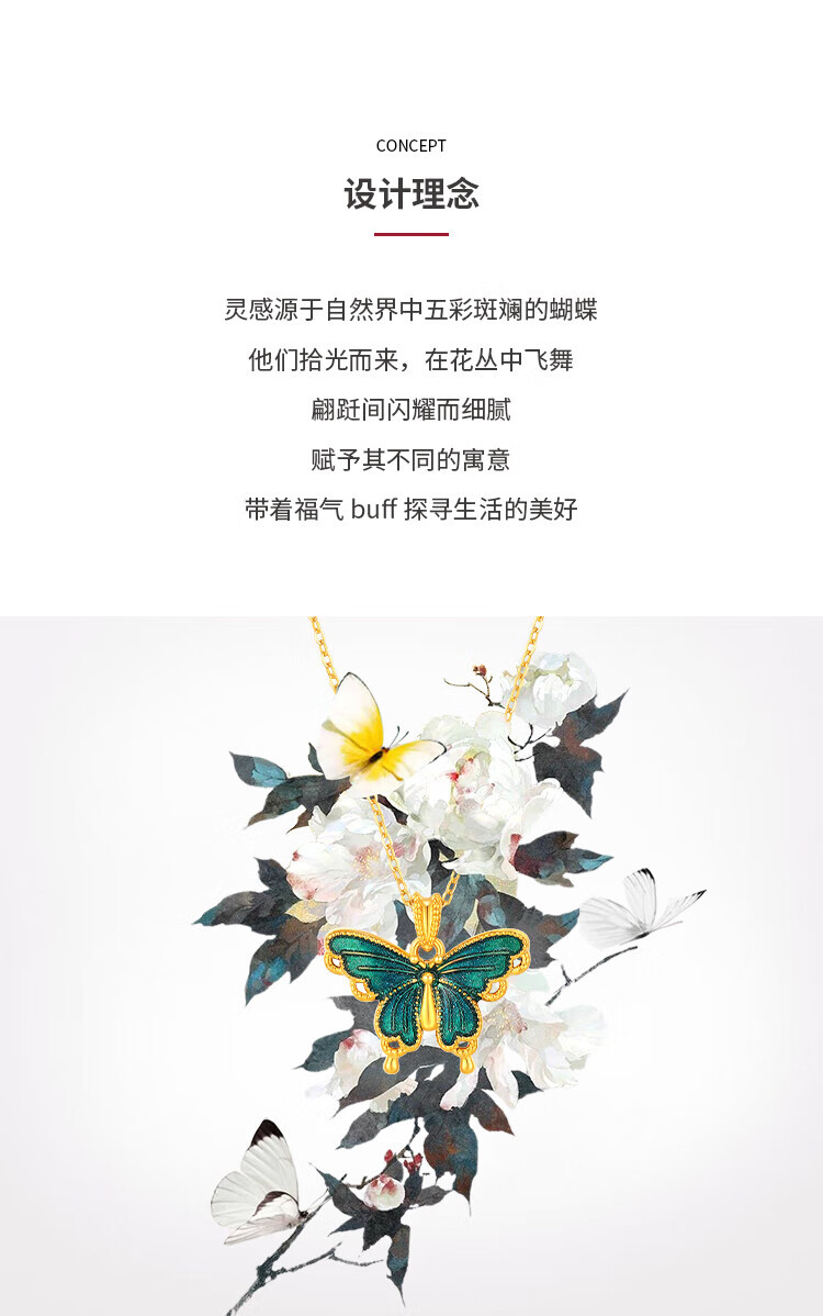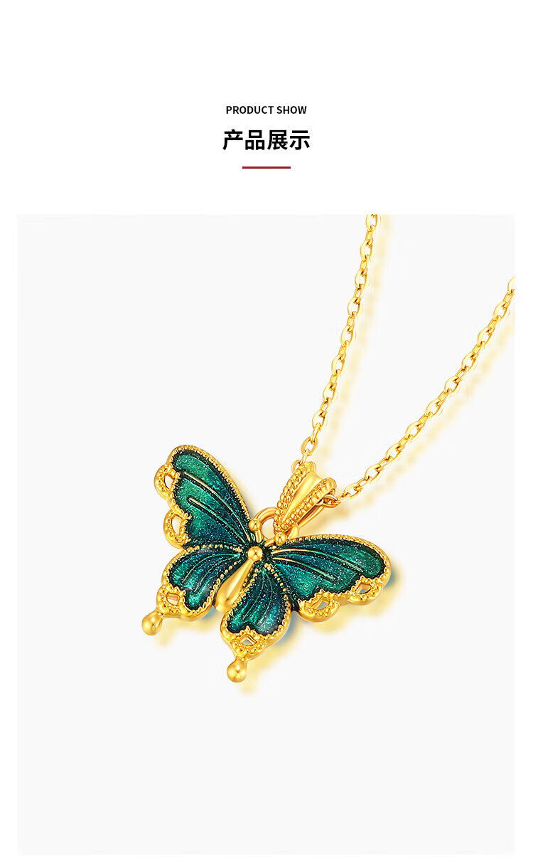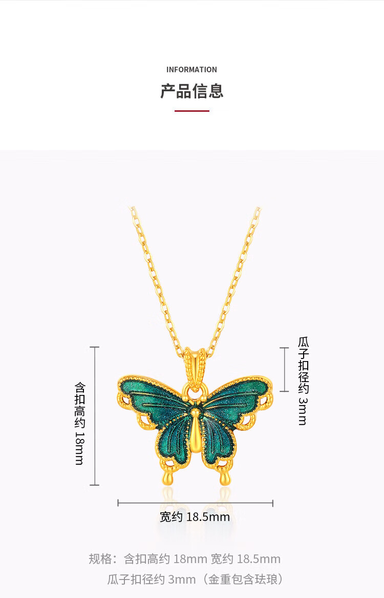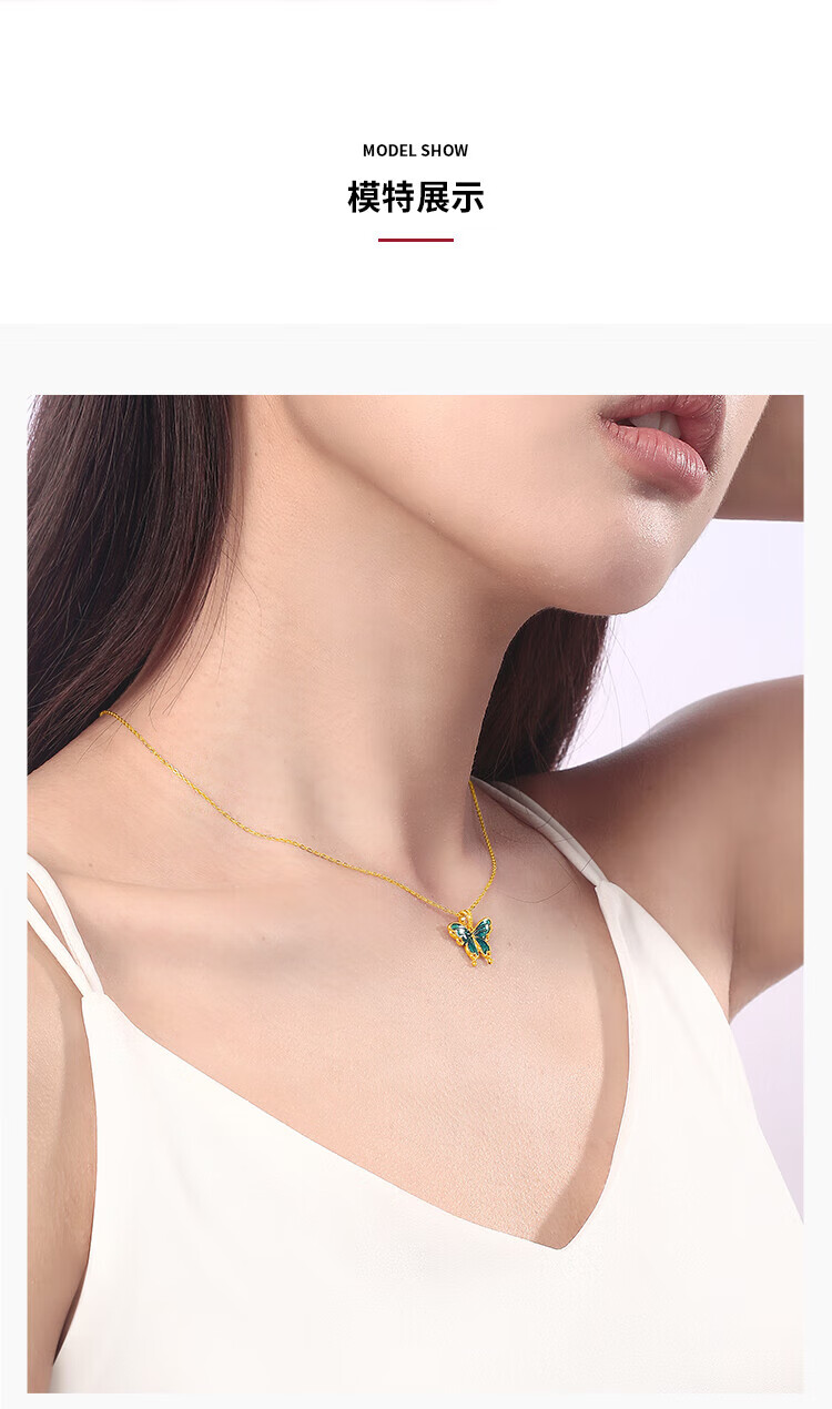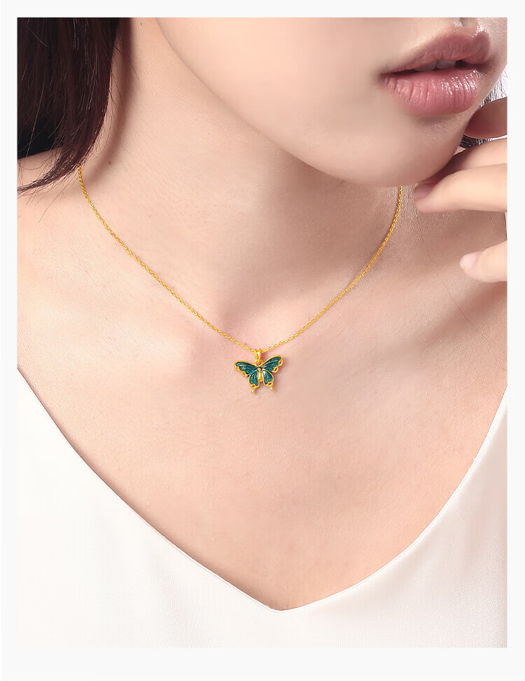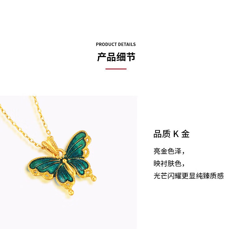Saifei's birthday gift 18K gold pendant enamel butterfly gift for girlfriend K yellow Zhufeng butterfly + silver chain + rose gift box