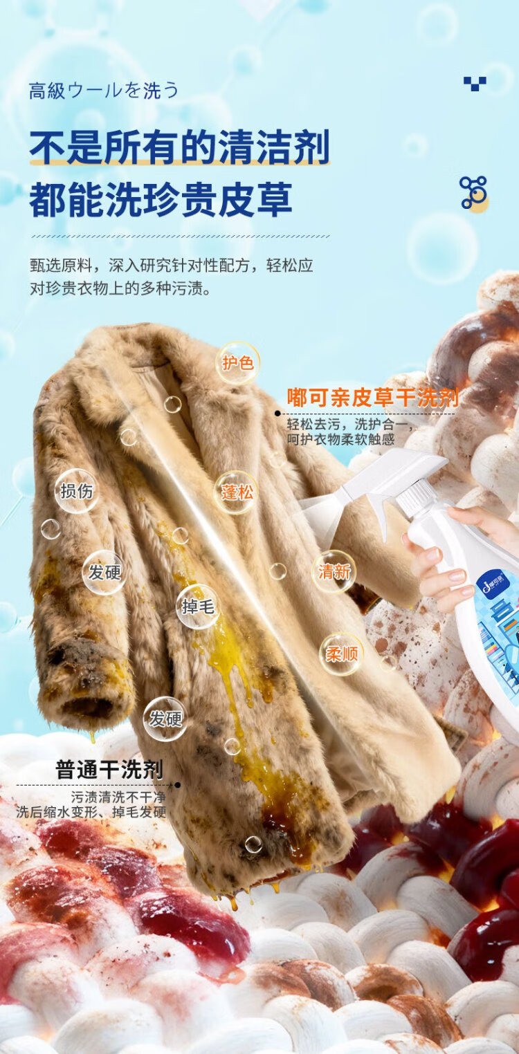 Dukki Fur Cleaner Fur All-in-One Mink Fur Care Dry Cleaner Mink Sheep Shearing Water-Free Fox Fur Cleaner
