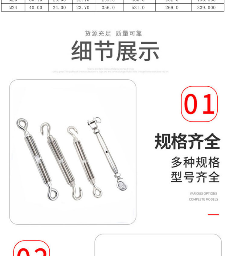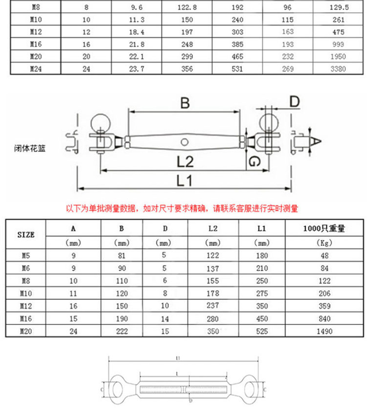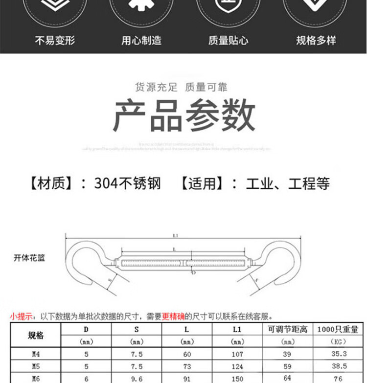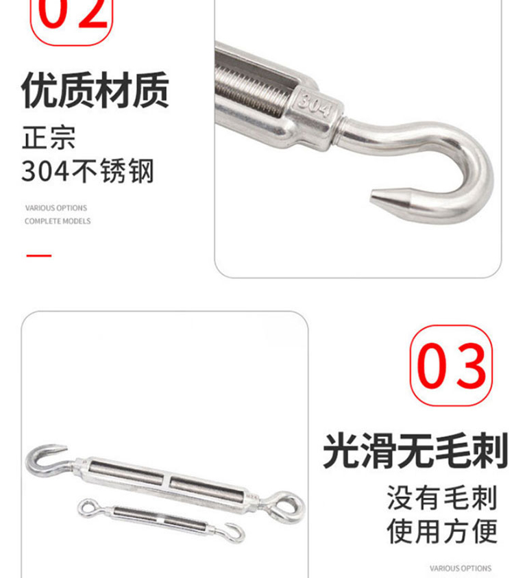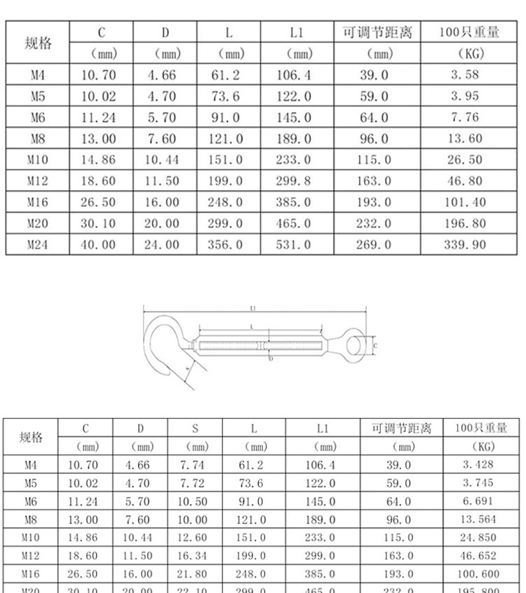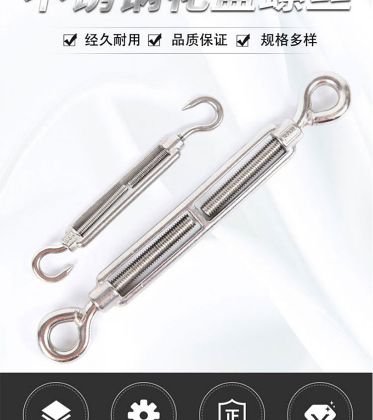 Jinguluo 304 stainless steel turnbuckle screws, wire rope tensioners, open body turnbuckles, M12 CC type load-bearing 500 kg