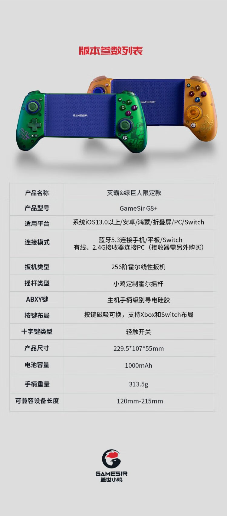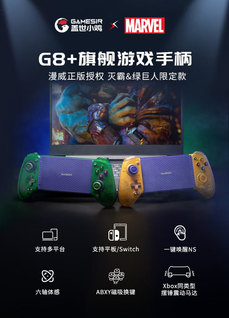 GAMESIR G8+Hulk Hulk Marvel co-branded wireless mobile game somatosensory controller mobile phone tablet Android ios Apple switch zone zero mobile game PC computer ns Bluetooth