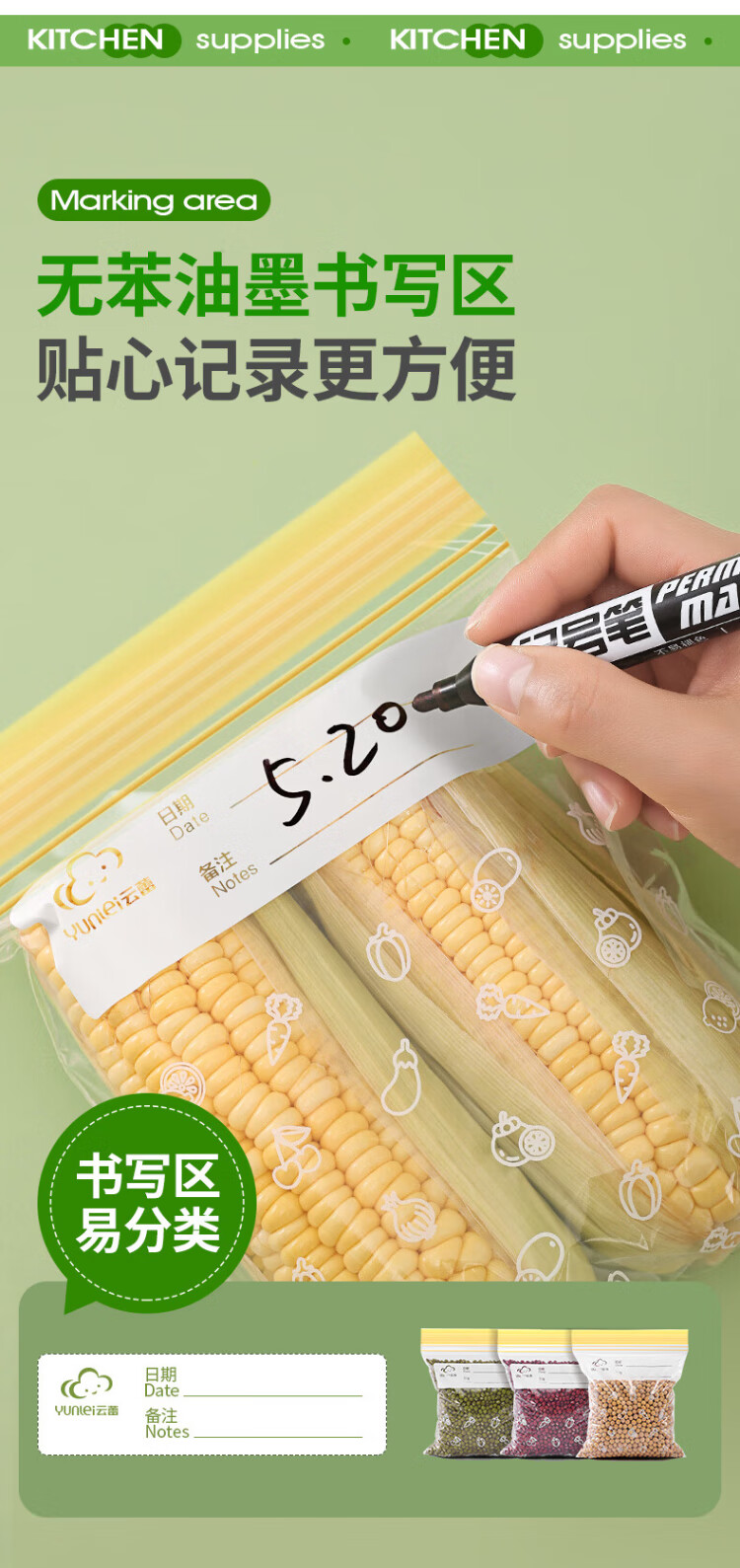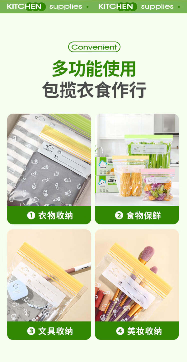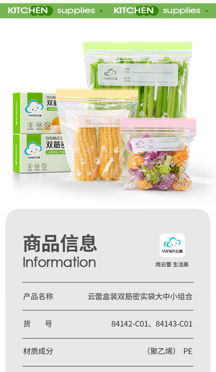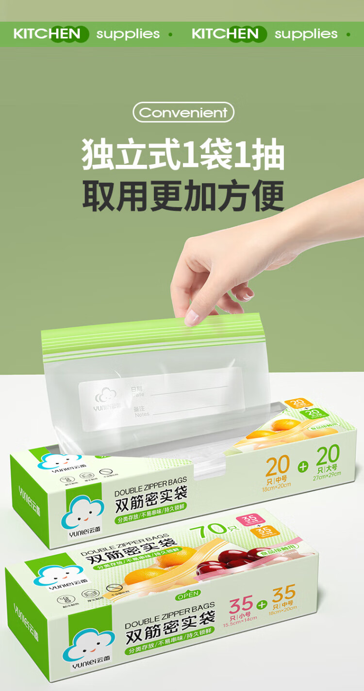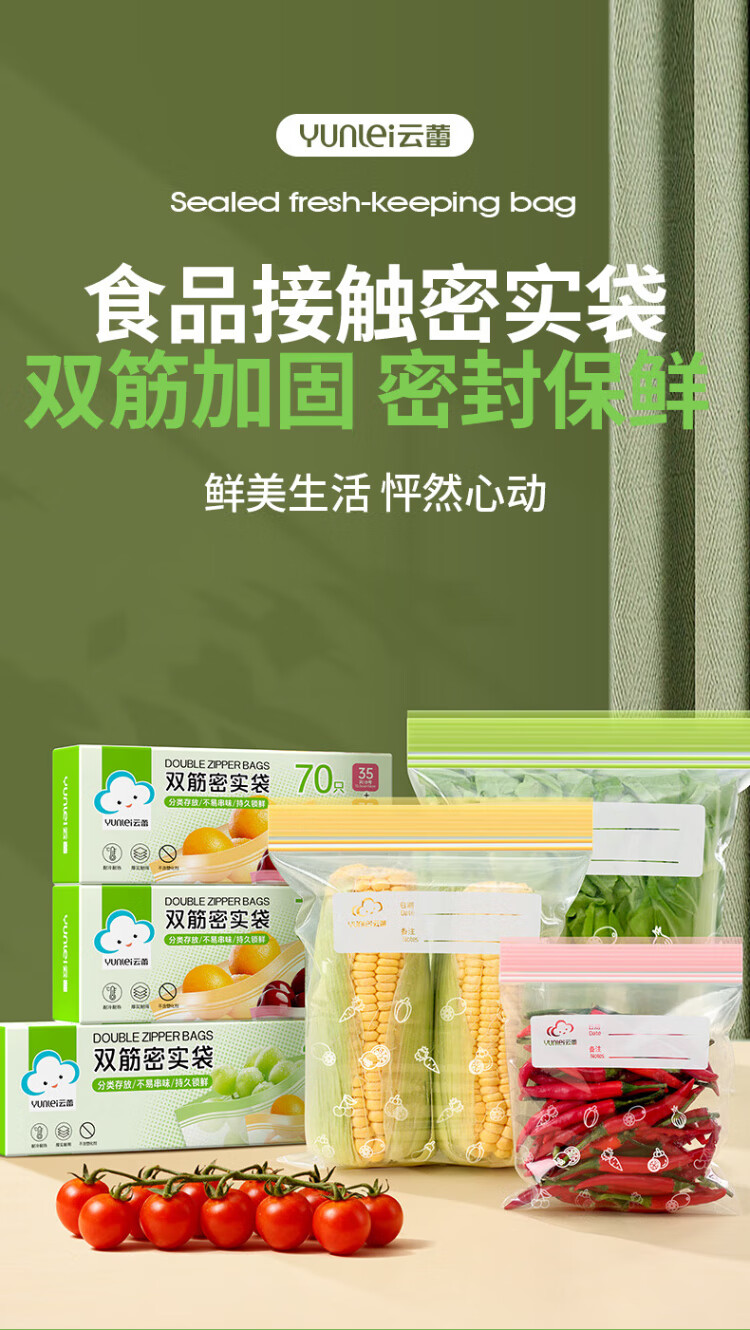 Yunlei sealed bag food preservation bag disposable refrigerator storage bag complementary food dense bag thickened repeatable small and medium 70 pieces