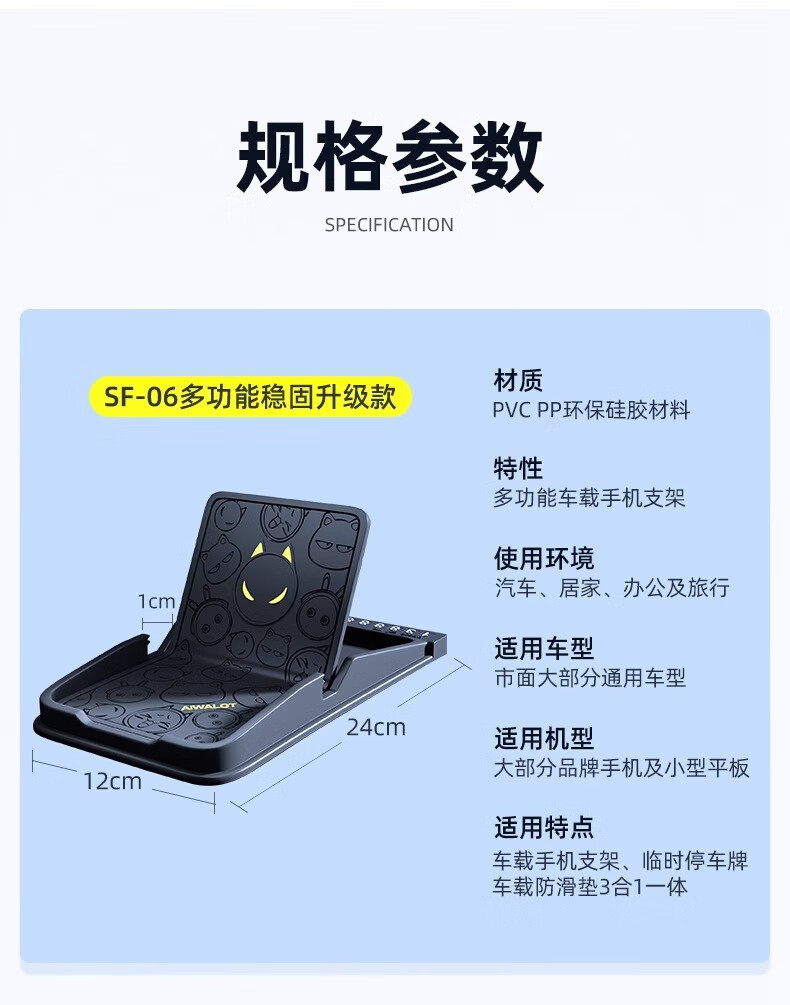 Digalen car mobile phone holder multi-functional central control instrument panel car navigation anti-slip mat with parking number plate