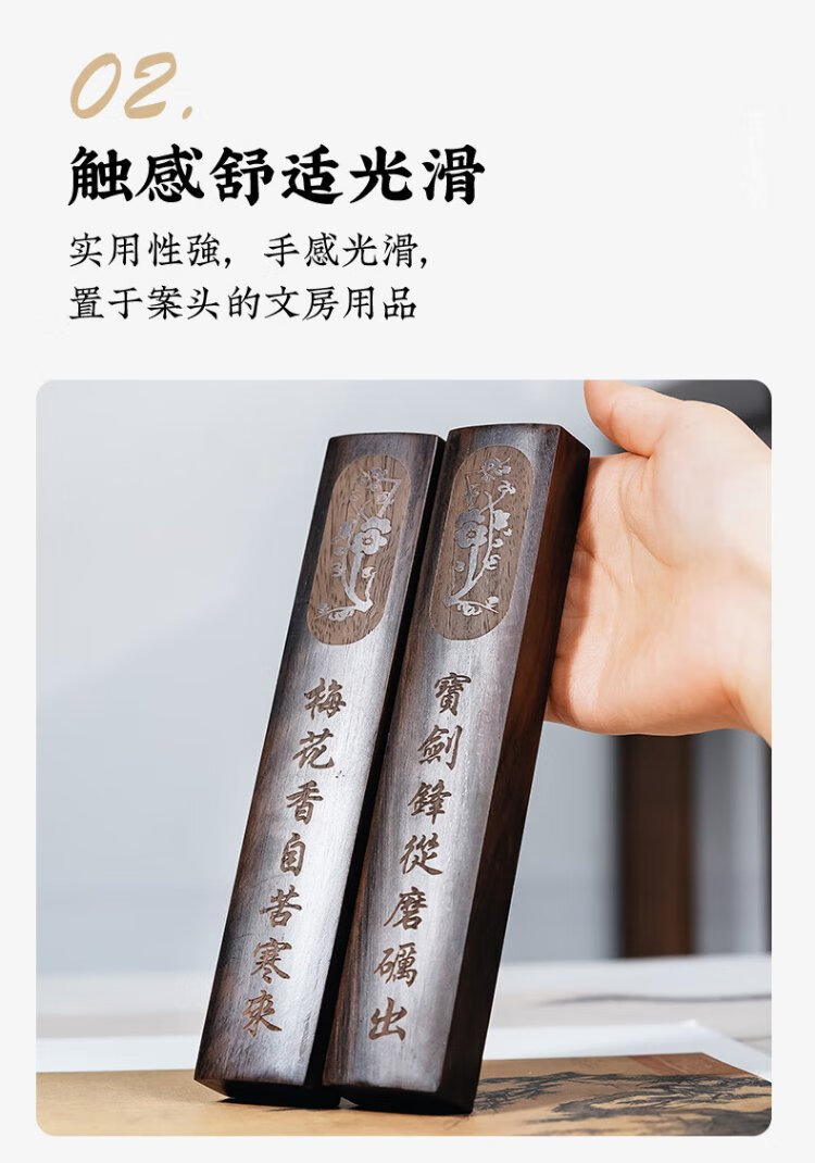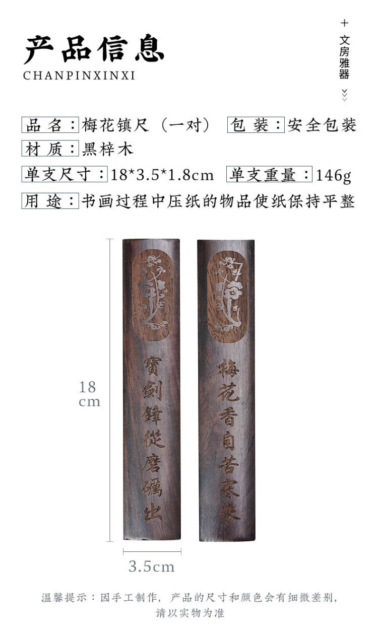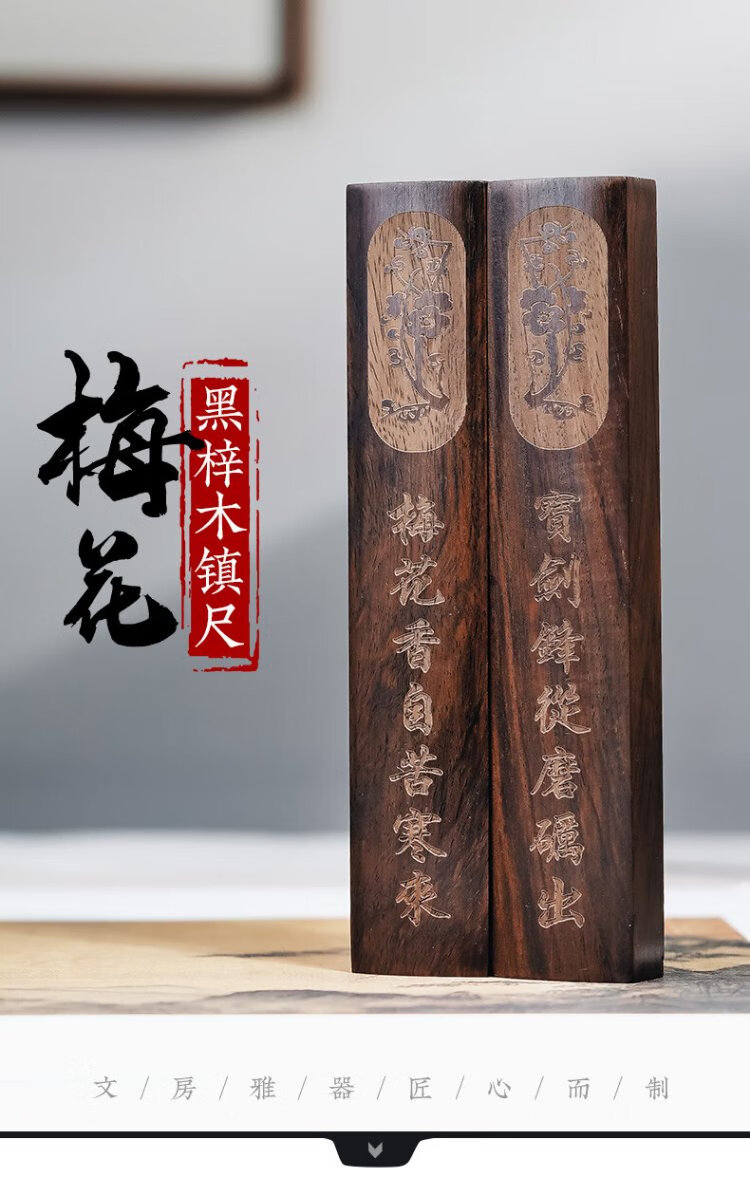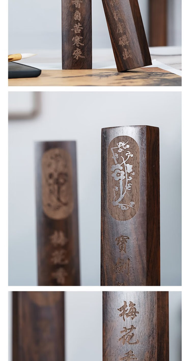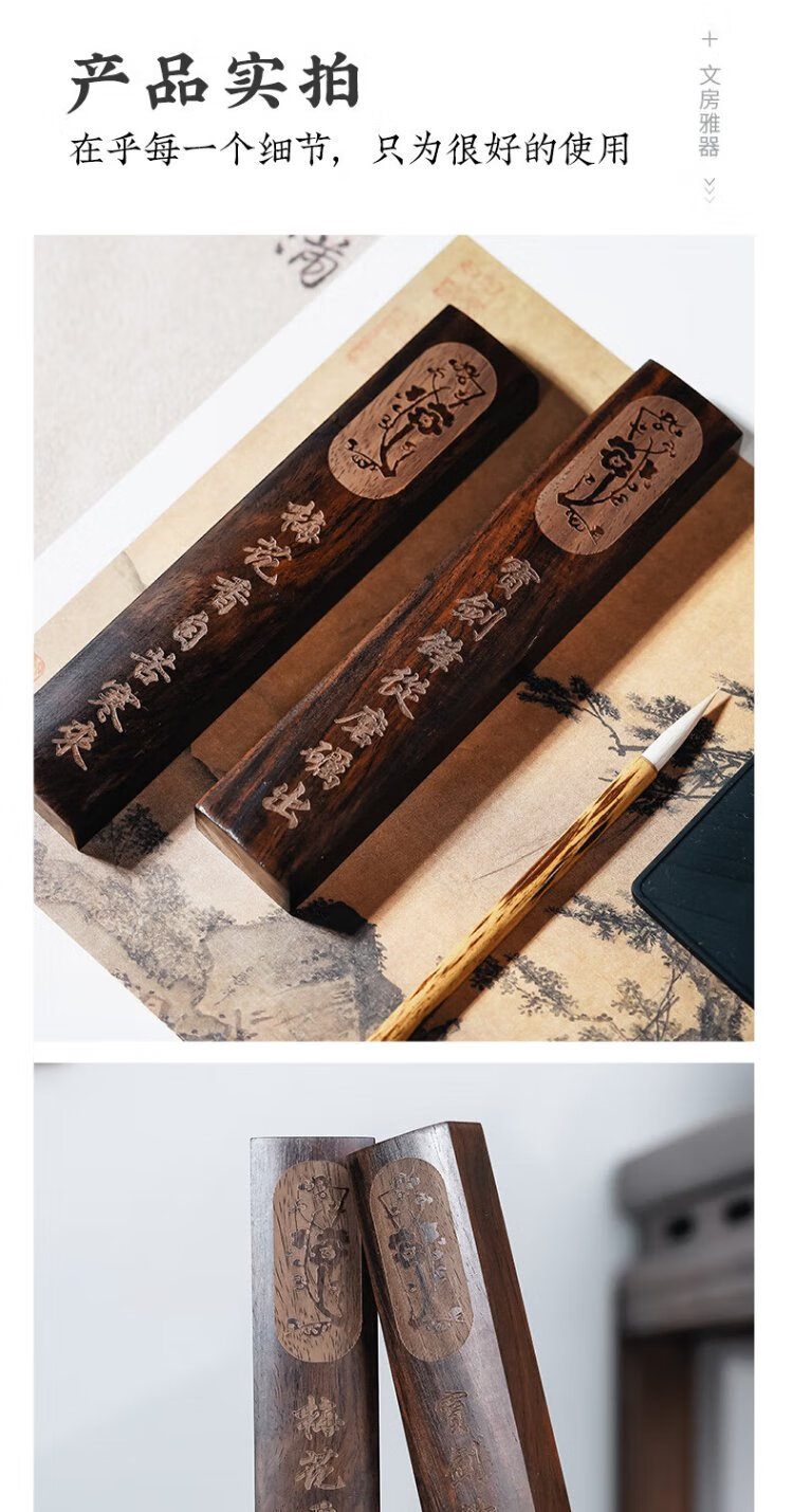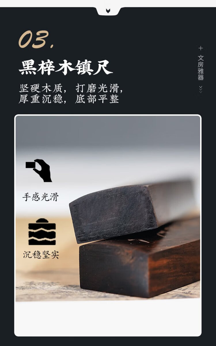 Rongbaozhai Ruler Solid Wood Study Four Treasures Student Brush Calligraphy Painting Pressed Paper Paperweight Ornaments Chinese Style Black Catalpa Wood Ruler Popular Products