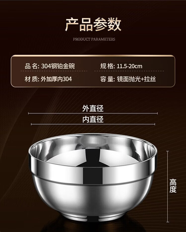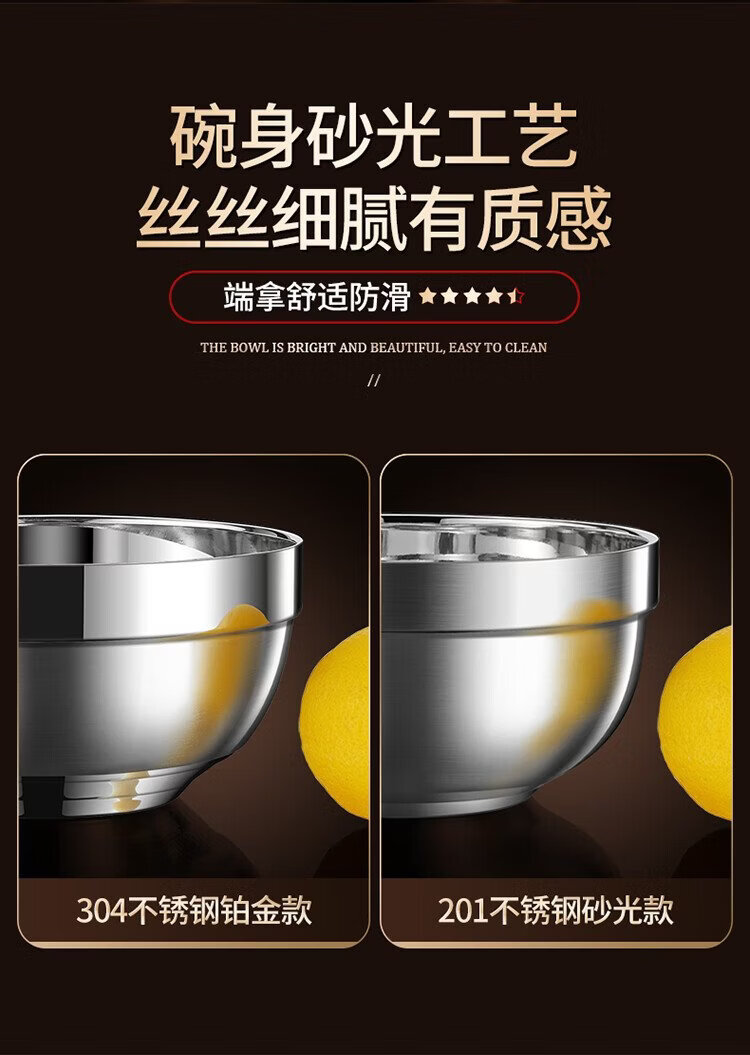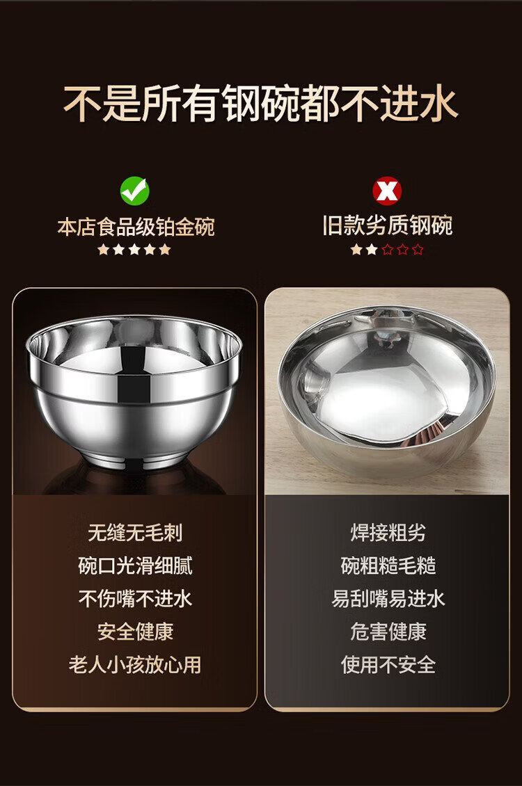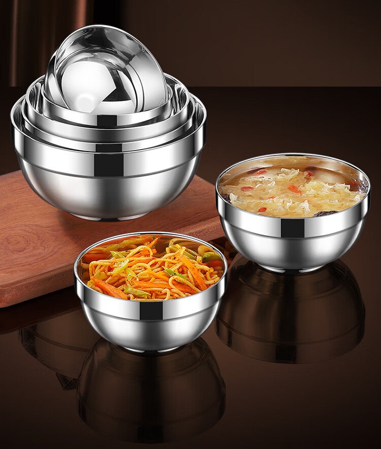 Venus 304 stainless steel bowl double-layer insulated anti-scalding soup bowl large instant noodle bowl for children and adults anti-fall rice bowl 11.5cm