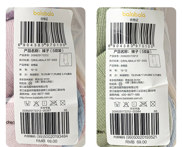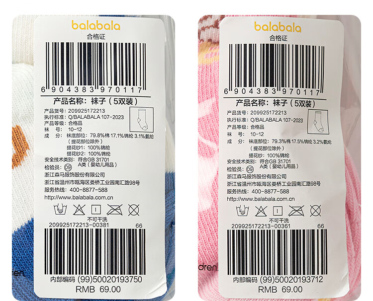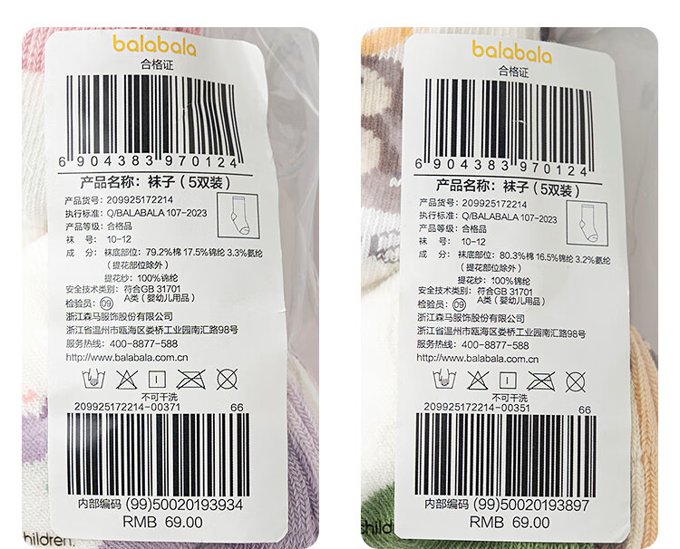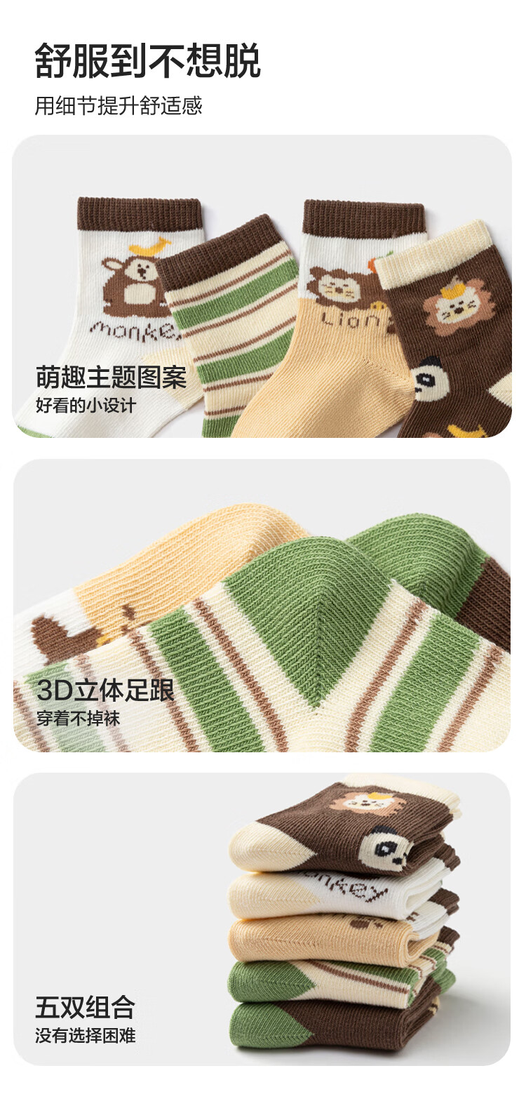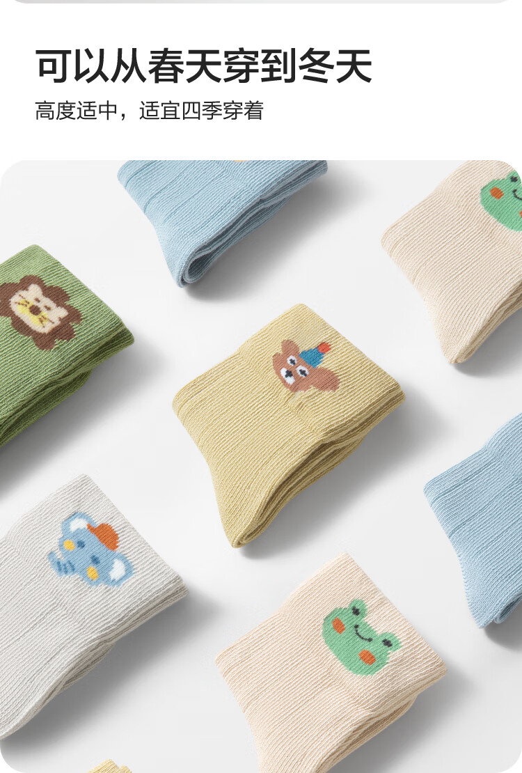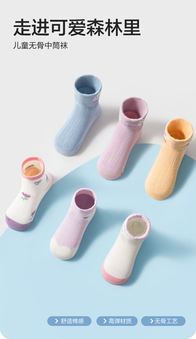 Balabala socks, autumn infant and toddler mid-calf socks, soft and elastic, boneless, hand-sewn, five pairs set 209925172214