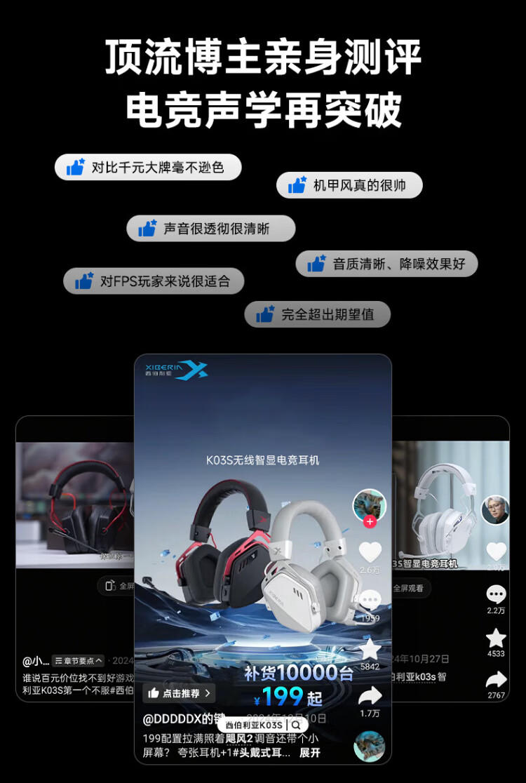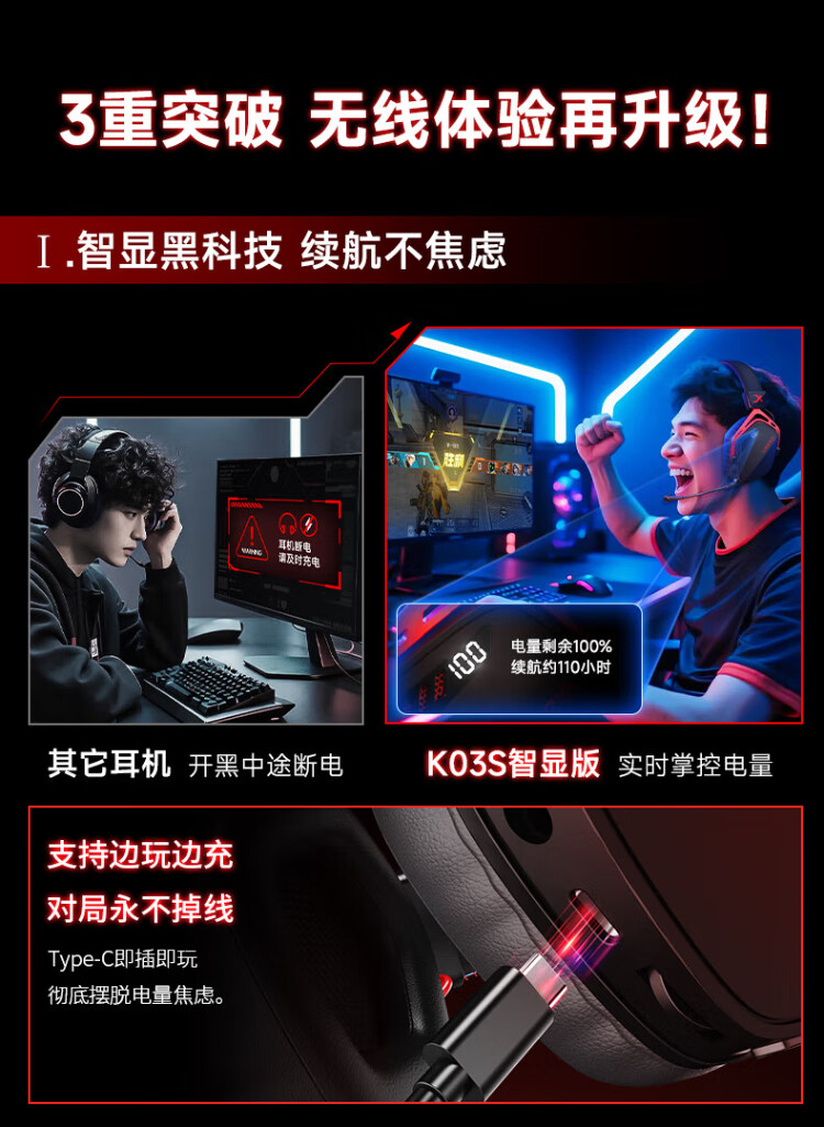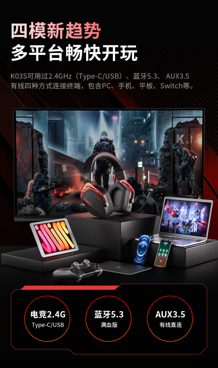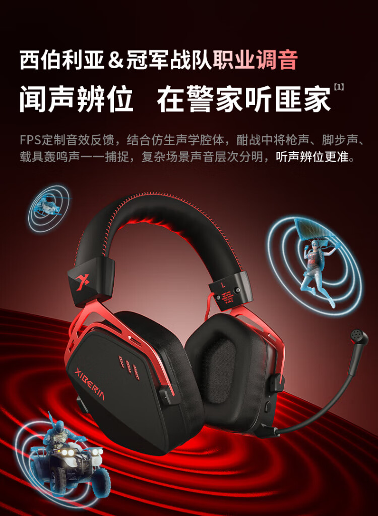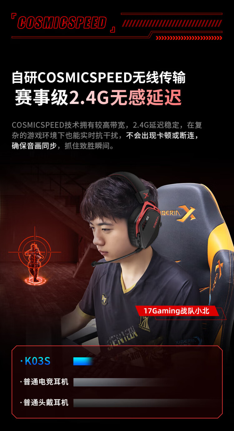 Siberia (XIBERIA) K03S four-mode wireless gaming headset head-mounted e-sports delta FPS game special listening sound positioning and tile smart display warrior black TOP1