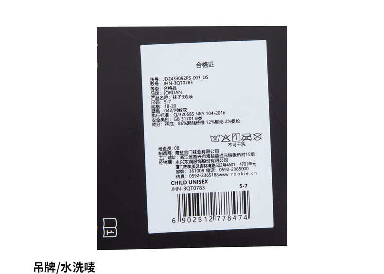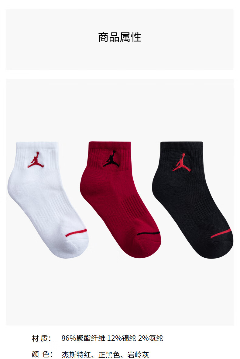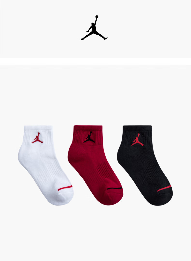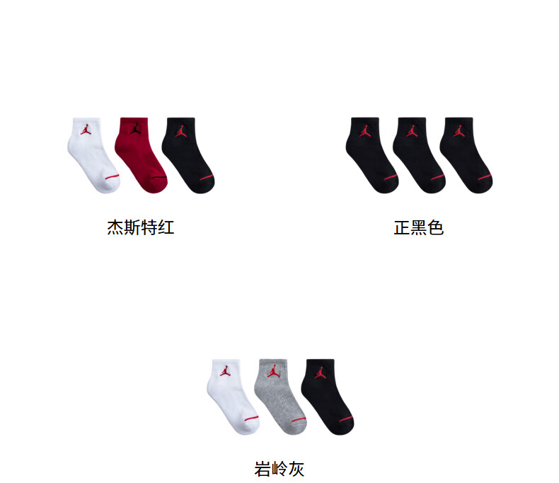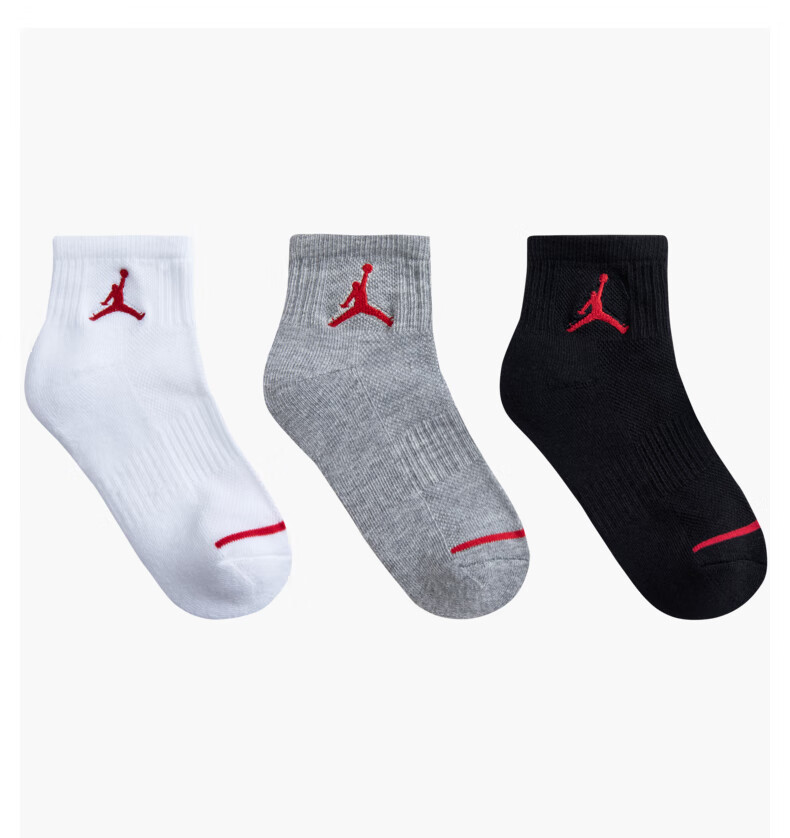Jordan Nike children's clothing boys and girls sports socks AJ mid-length socks 3 pairs JD2433092 Rock Ridge Gray 5/7