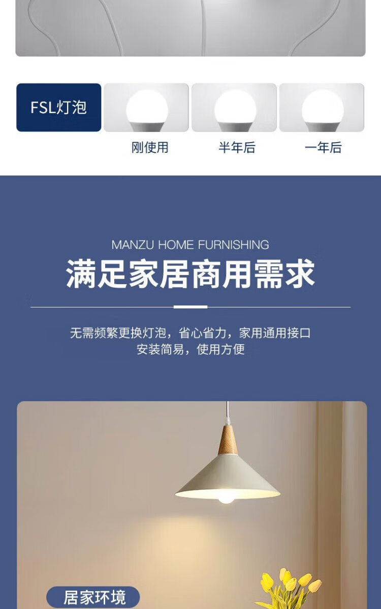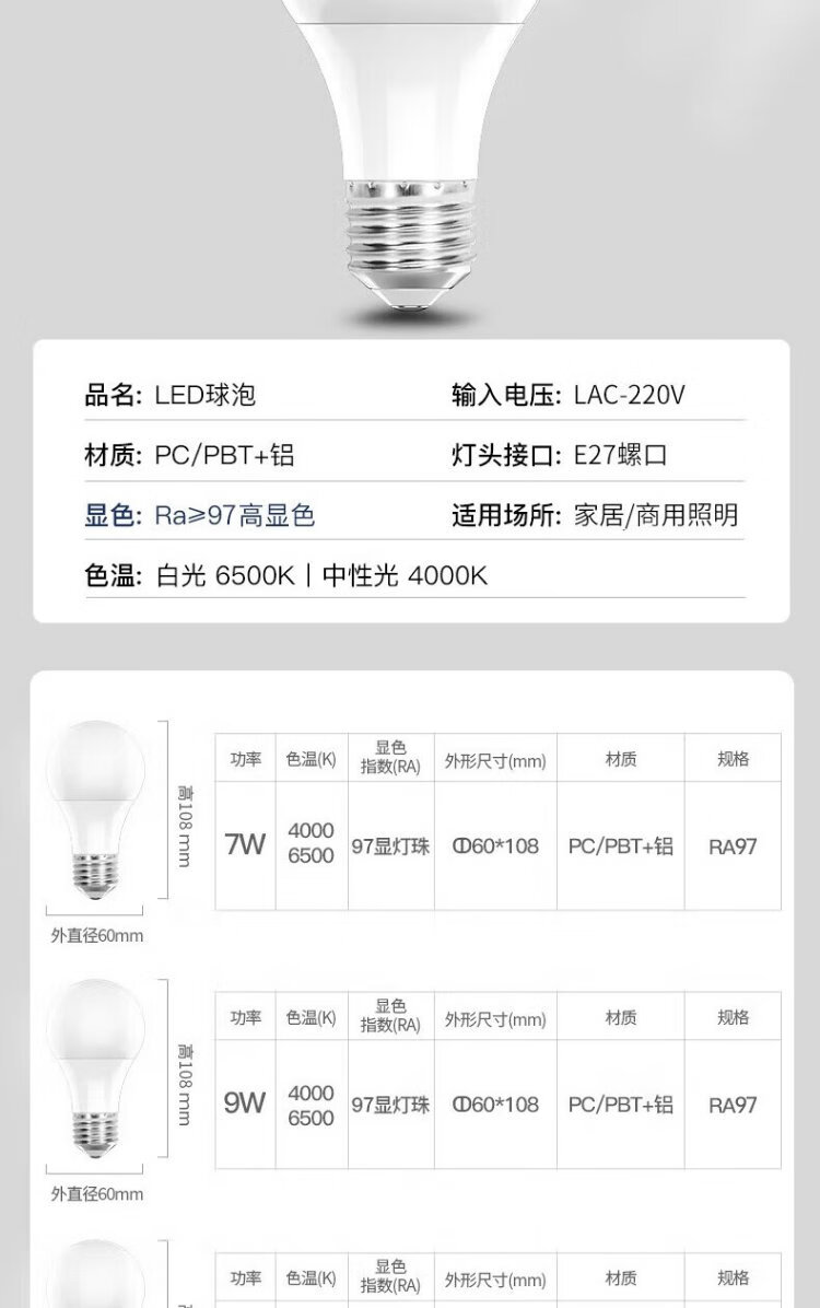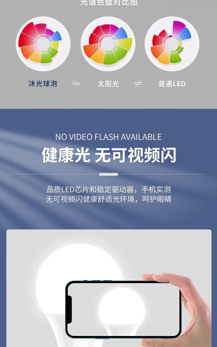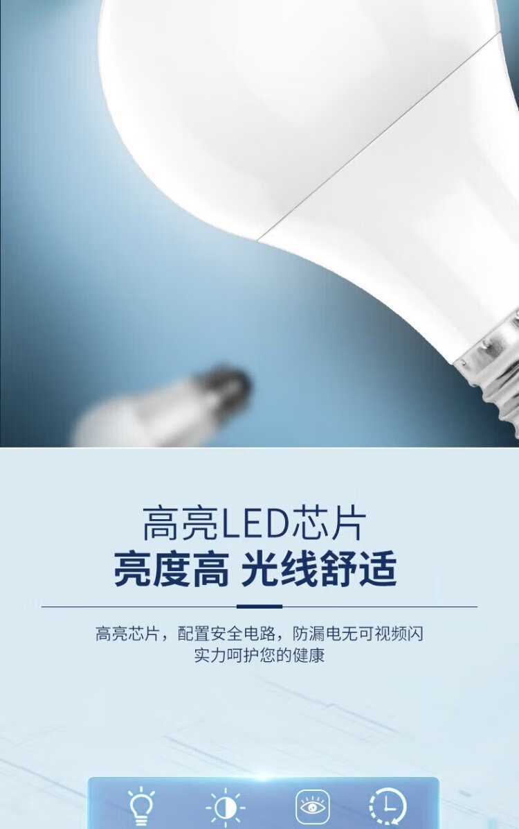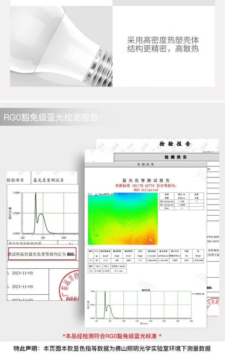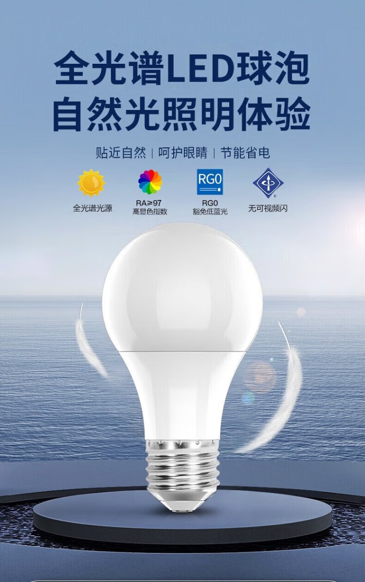 FSL LED bulb full spectrum ultra-bright energy-saving RG0 anti-blue light high color rendering Ra97 bulb E27 screw mouth 12W white light (6500K) Muguang series
