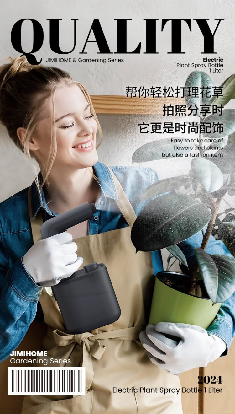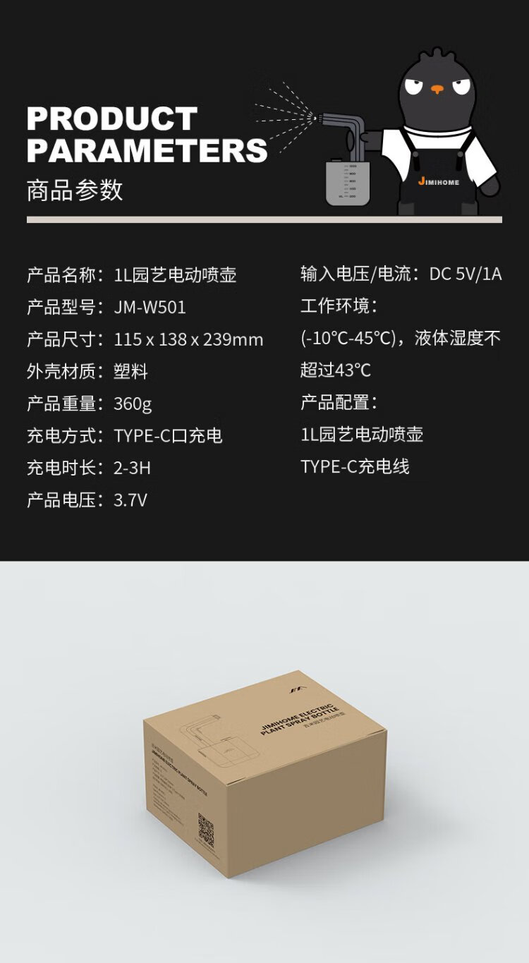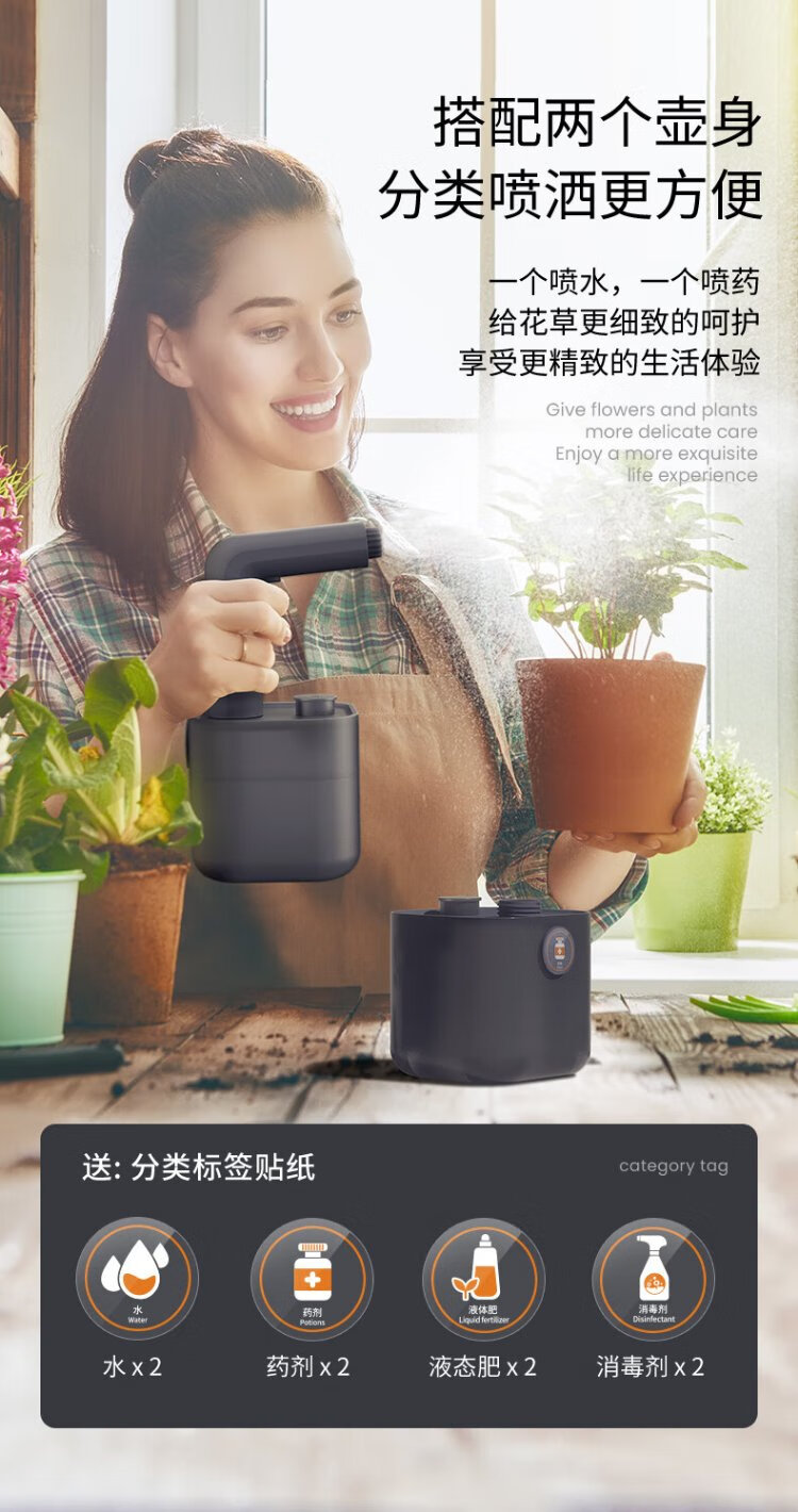 Jimmy Home and Garden Electric Watering Can 1L Flower Watering Cleaning Watering Can Includes 2 Replacement Bottles JM-W501