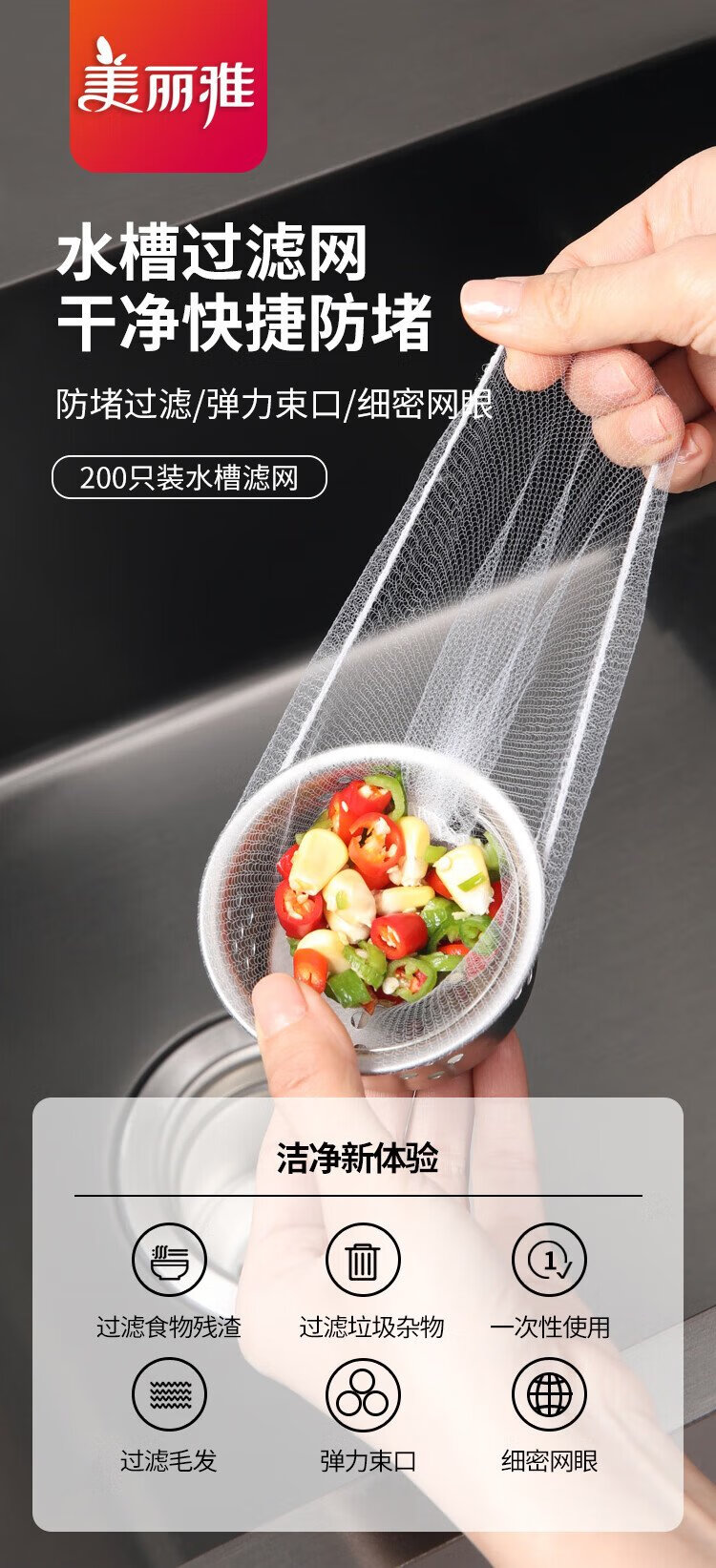 Meliya sink filter, 200 pieces, kitchen sewer sink, dishwasher, floor drain, anti-blocking mesh screen, disposable filter