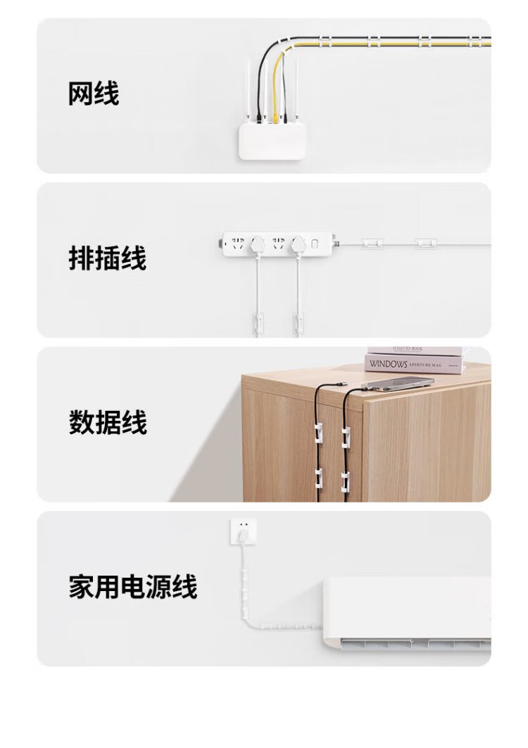 Green Alliance Cable Organizer, Wire Fixer, Wire Routing Artifact, Nail-free Wall Sticker, Traceless Power Cord Storage and Organizing Cable Clip, Network Cable Enlarged Backplate Buckle, Self-Adhesive Artifact, 4 Pack