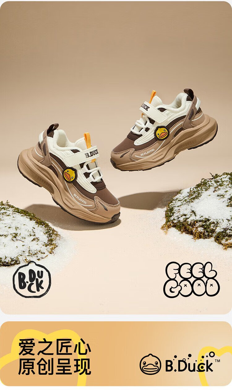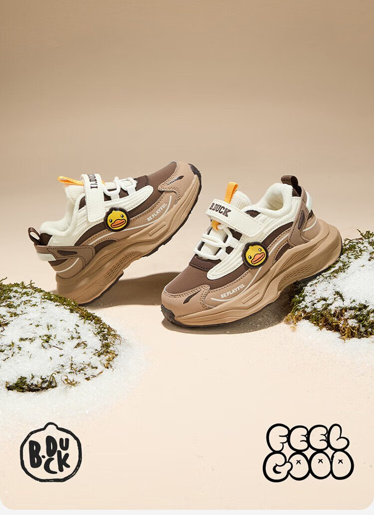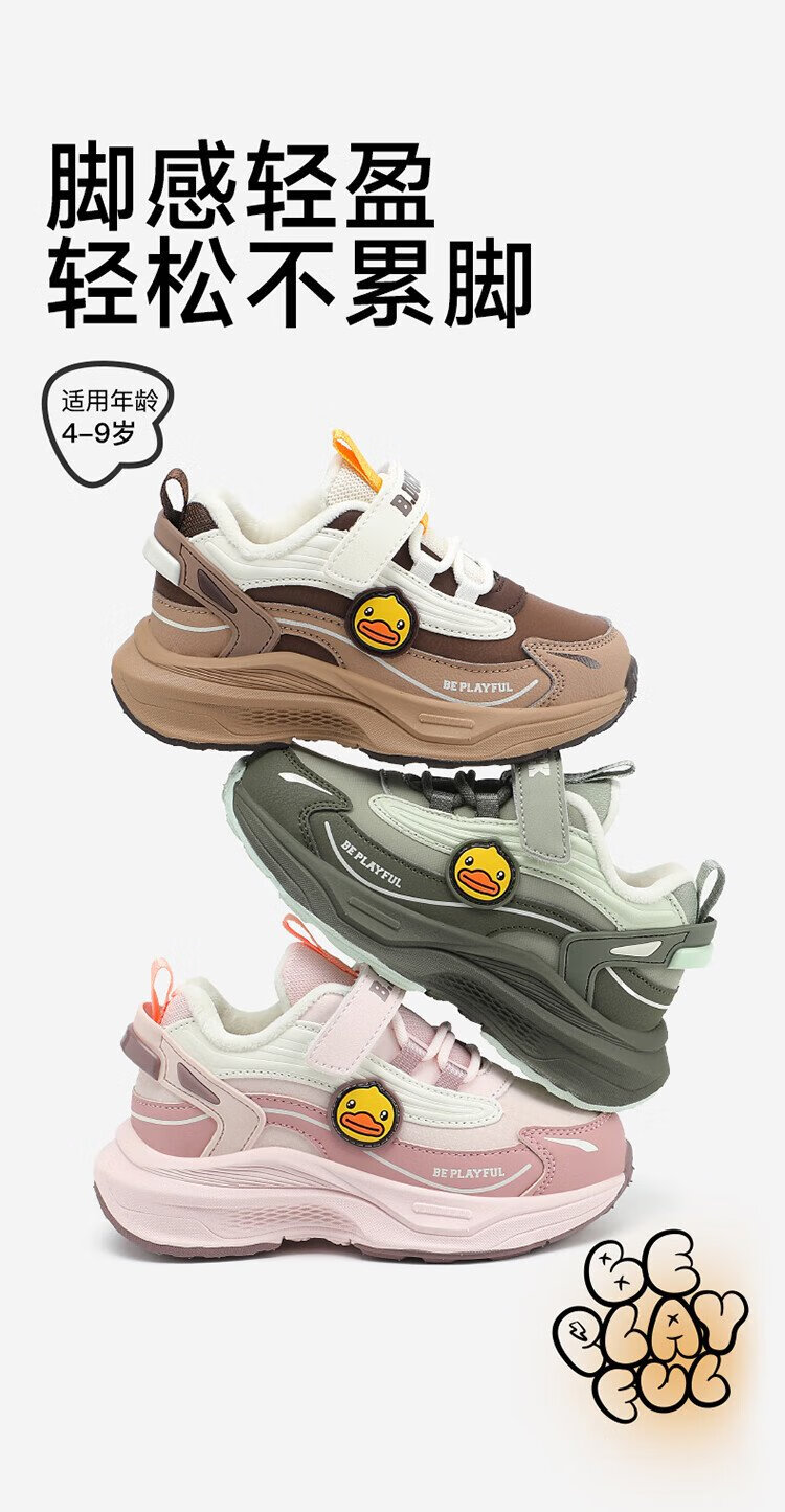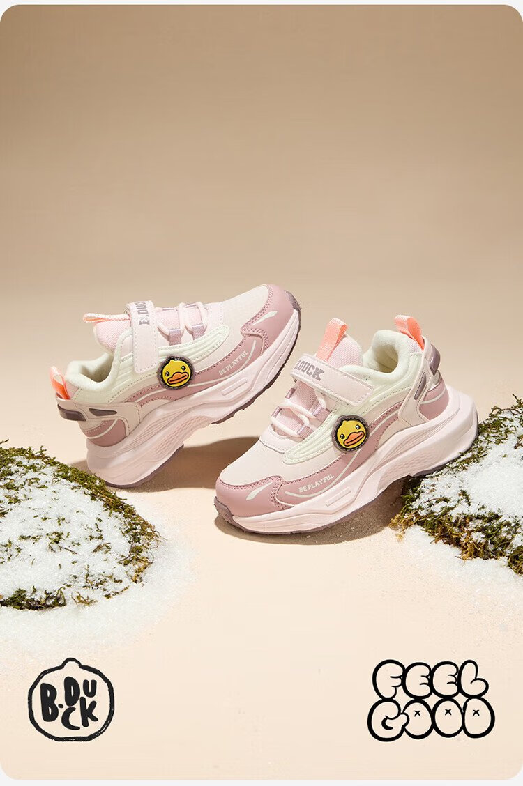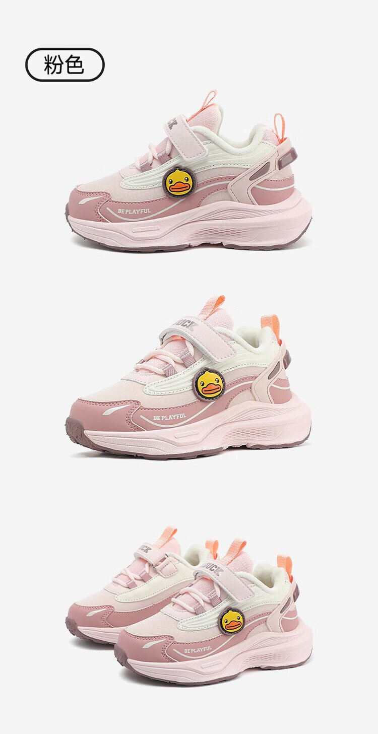 B.Duck Little Yellow Duck Children's Shoes Children's Cotton Shoes Winter Boys and Girls Two Cotton Warm Sports Shoes Lightweight Running Shoes 6886 Pink 29