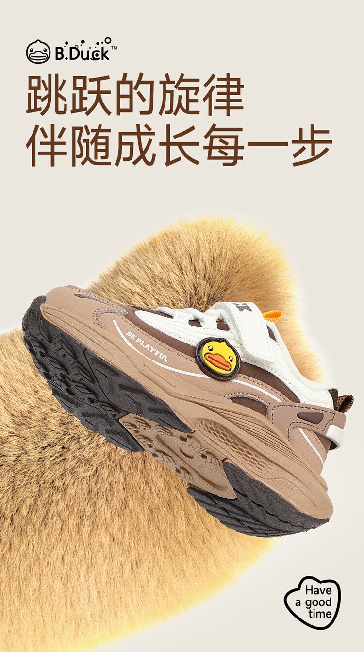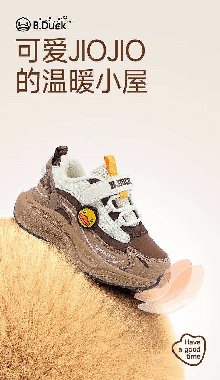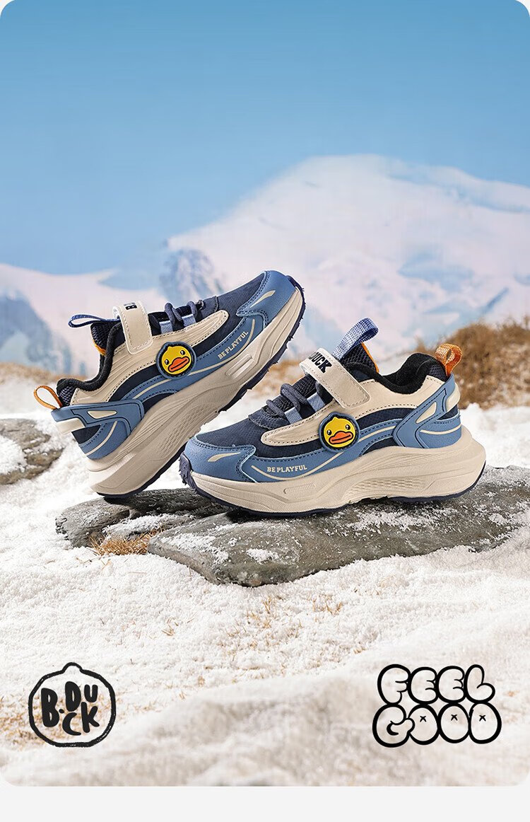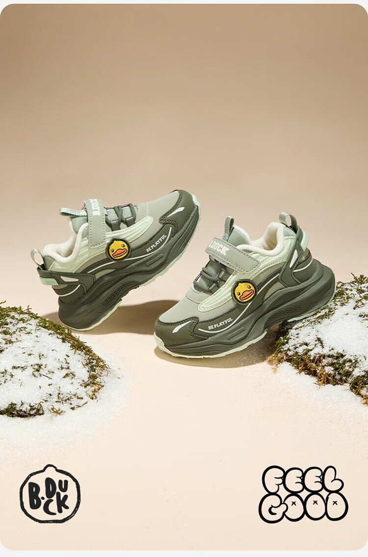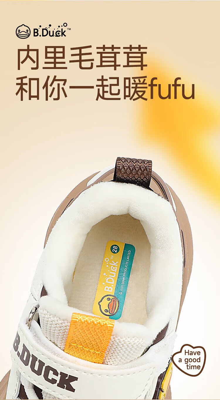 B.Duck Little Yellow Duck Children's Shoes Children's Cotton Shoes Winter Boys and Girls Two Cotton Warm Sports Shoes Lightweight Running Shoes 6886 Pink 29