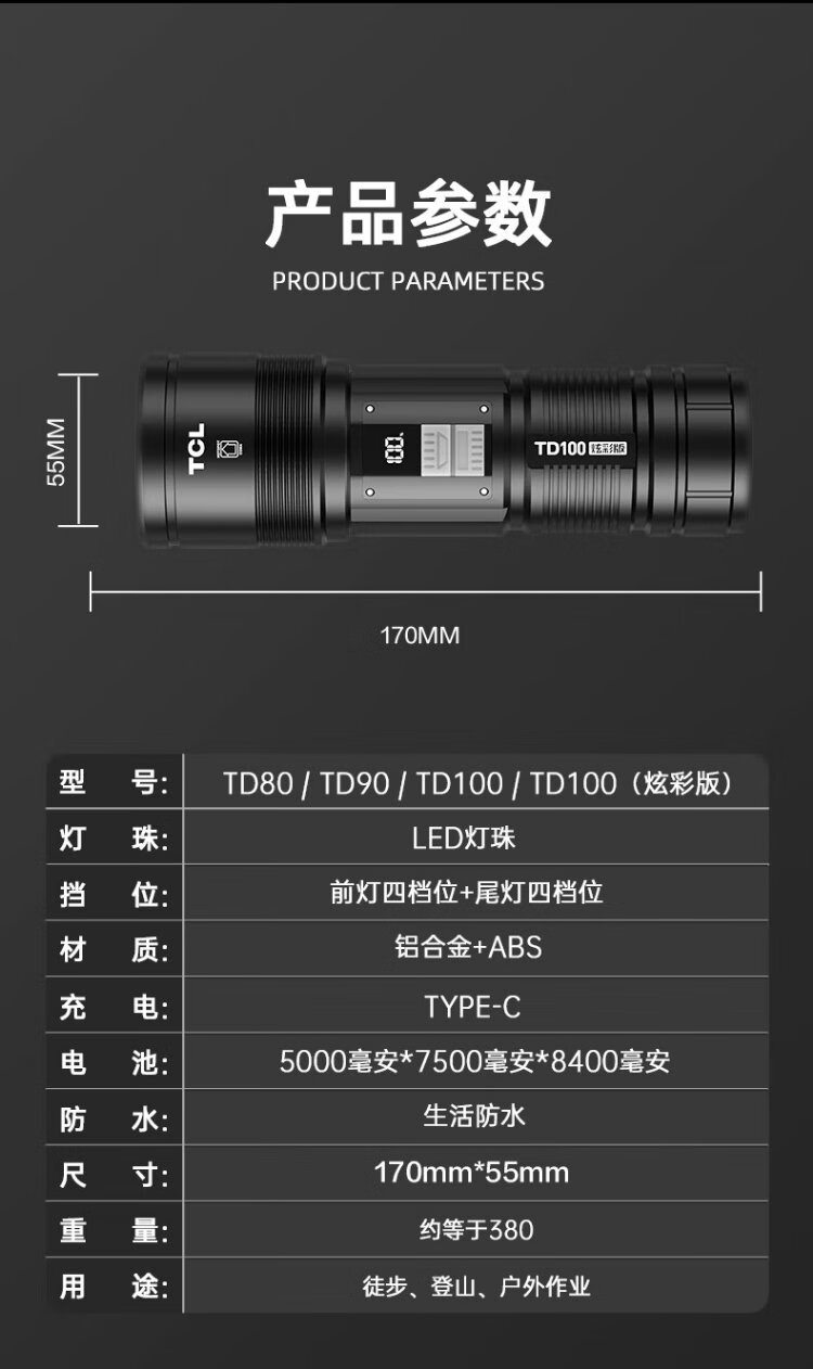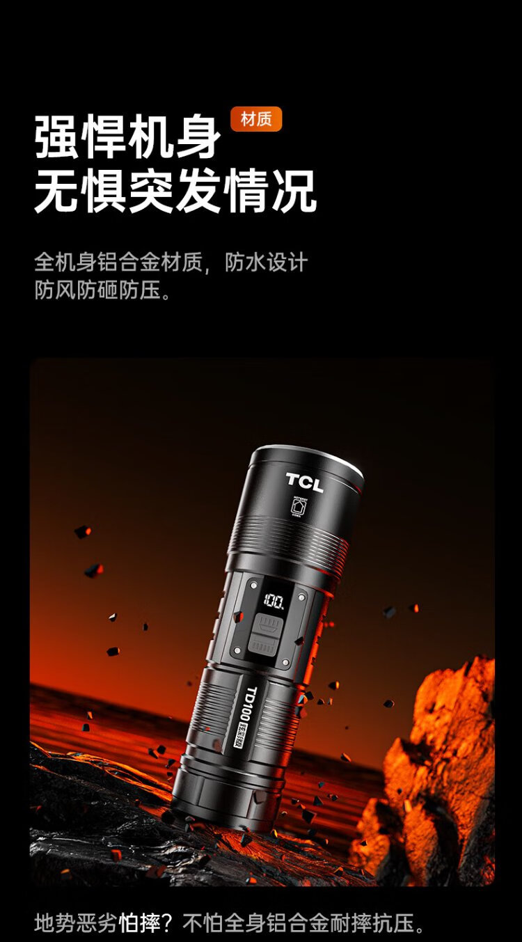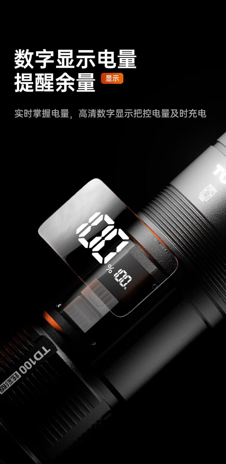 TCLTD100 strong light flashlight, strong light, ultra-long battery life, outdoor survival lumen, sky-penetrating gun, home outdoor 200000K