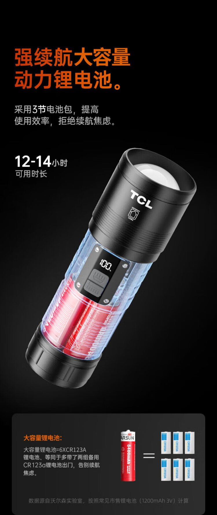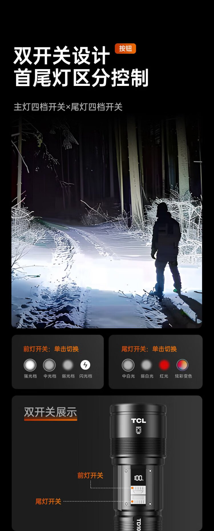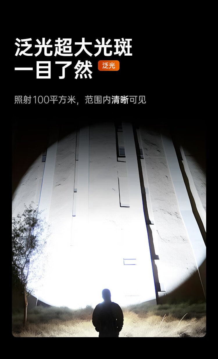 TCLTD100 strong light flashlight, strong light, ultra-long battery life, outdoor survival lumen, sky-penetrating gun, home outdoor 200000K