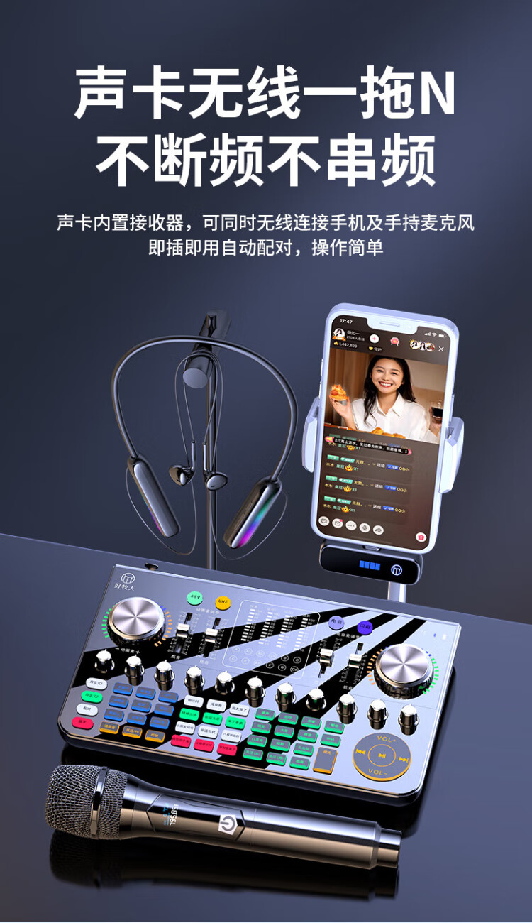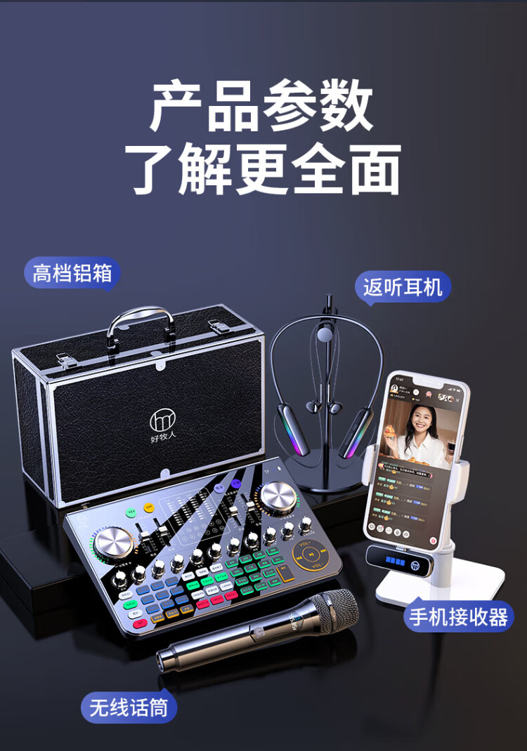Good Shepherd sound card live broadcast equipment full set all-in-one machine 2024 new Douyin anchor singing recording mobile phone dedicated computer professional external mixer wireless microphone karaoke