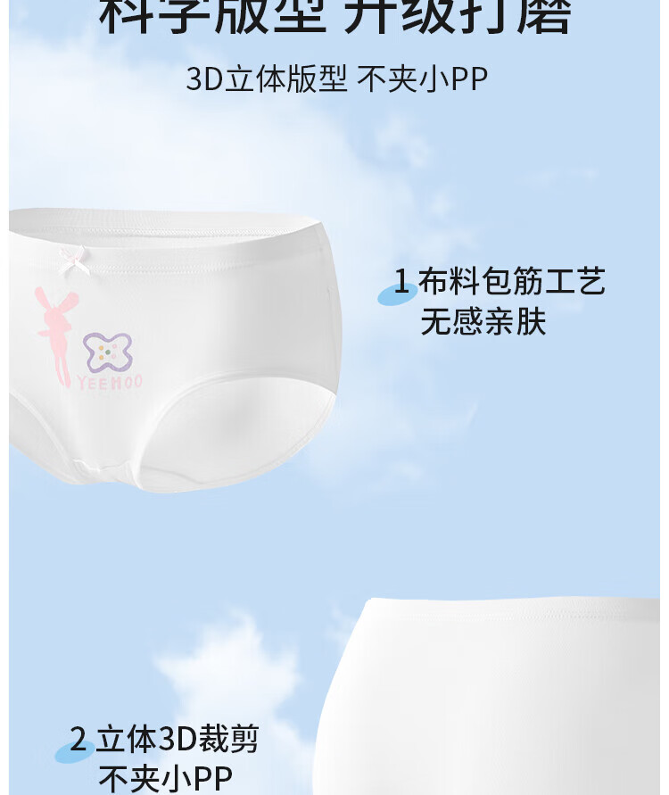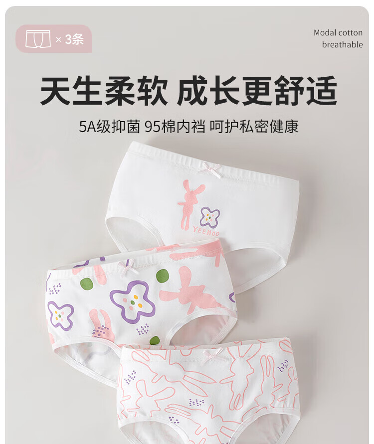 YEEHOO 5A Antibacterial Girls' Underwear Cute 95 Cotton Unclamped PP Triangular Children's Underwear Three Packs 140