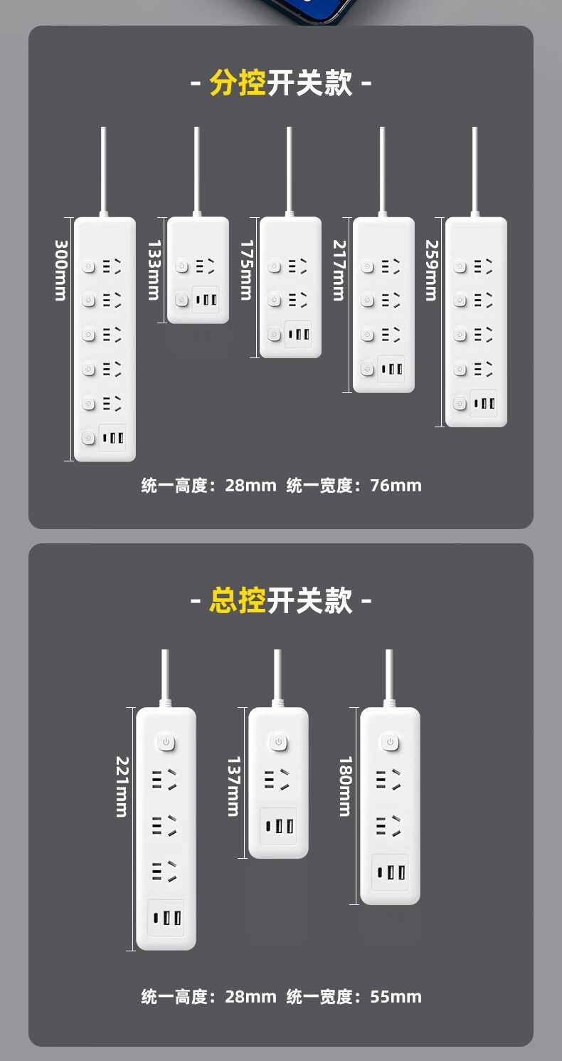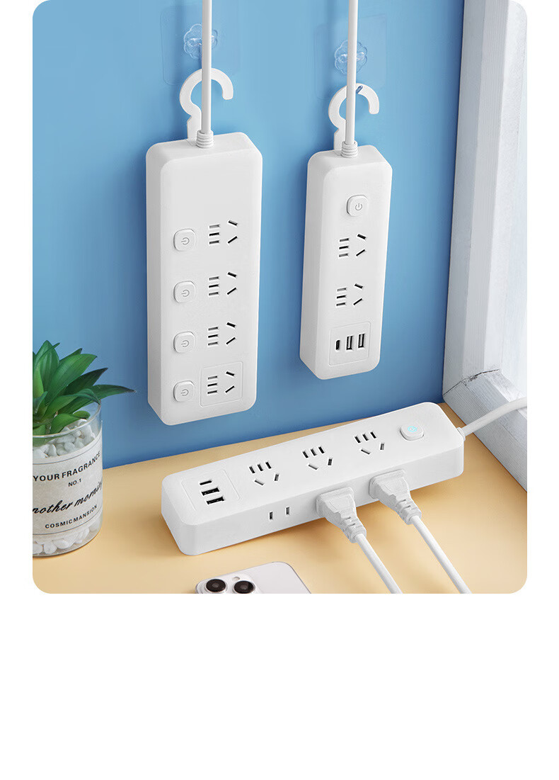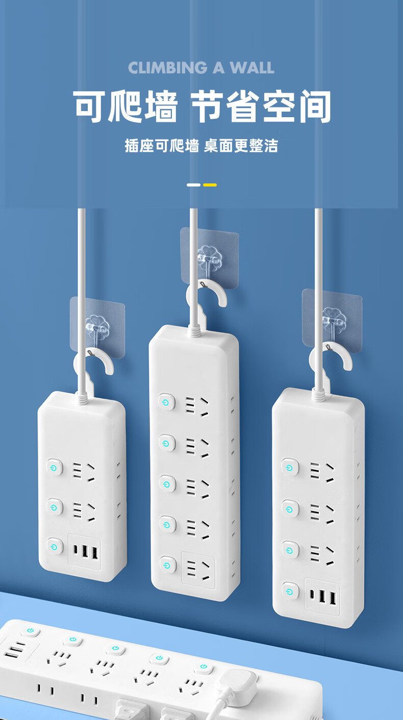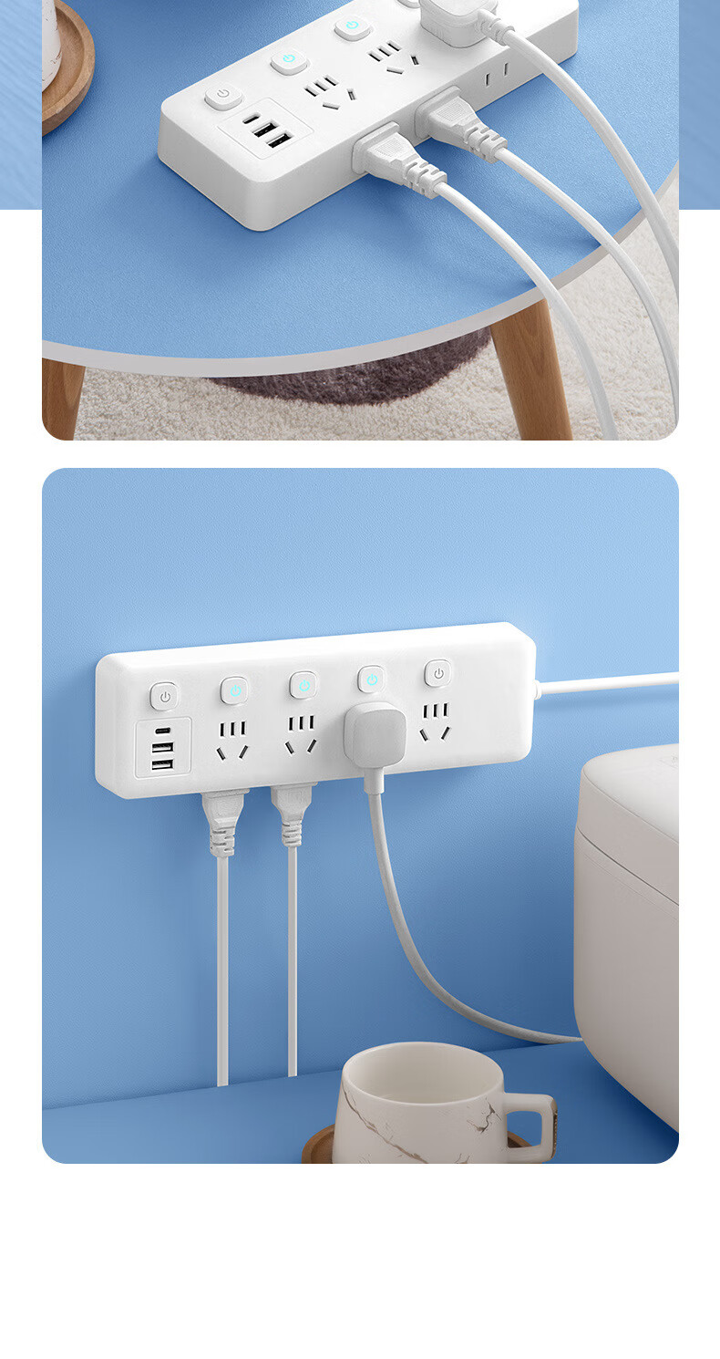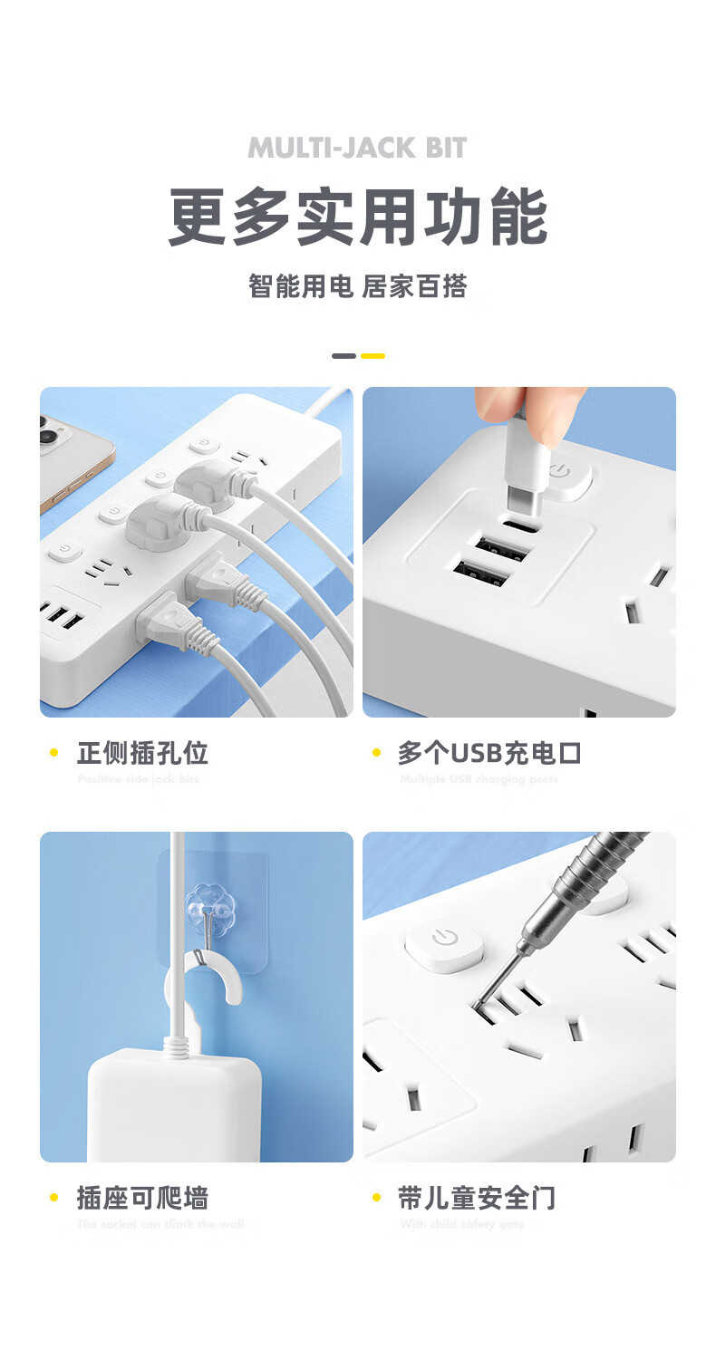 Tianshili USB multi-function power strip independent switch with side plug socket long line terminal board new national standard power strip 4.8 meters 5 jack positions + 2 USB + sub-control switch (shipped from Beijing warehouse)