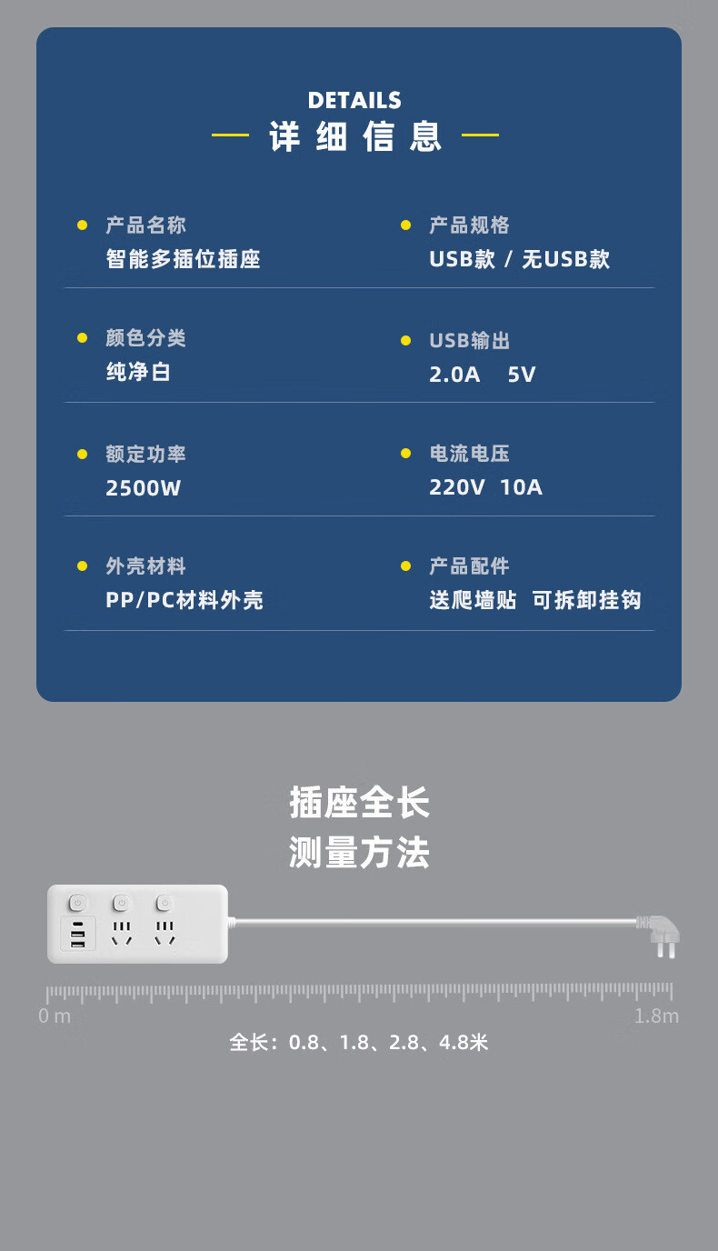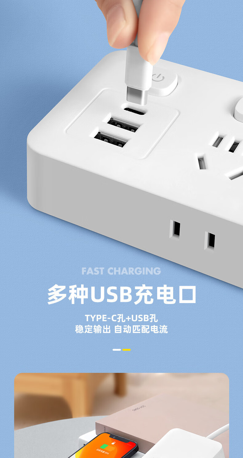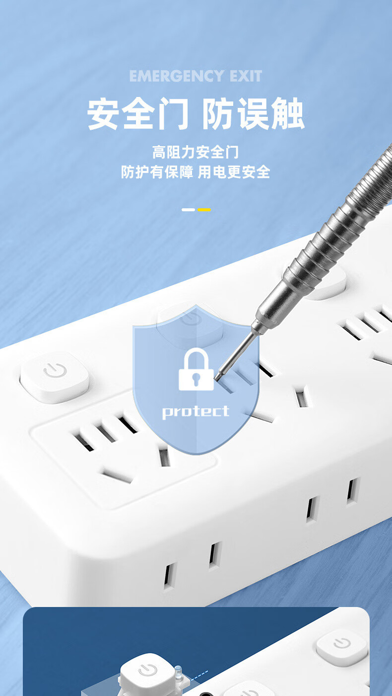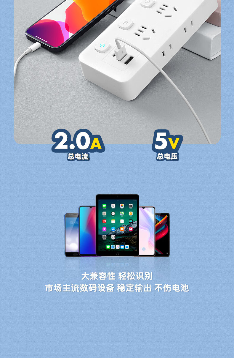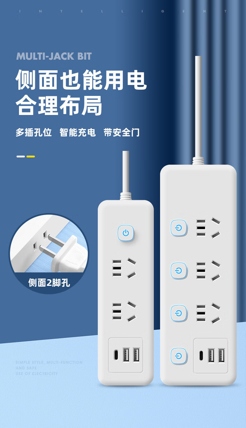 Tianshili USB multi-function power strip independent switch with side plug socket long line terminal board new national standard power strip 4.8 meters 5 jack positions + 2 USB + sub-control switch (shipped from Beijing warehouse)