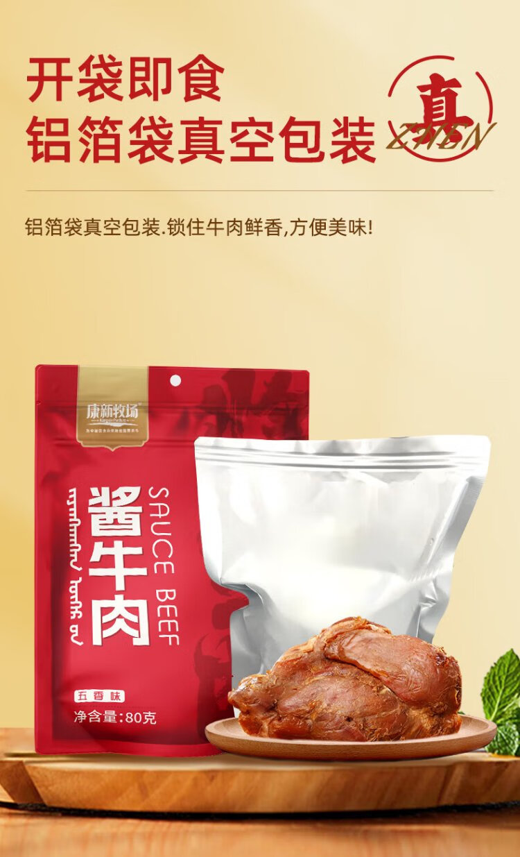 Kangxin Ranch Sauce Beef 80g 10 bags ready-to-eat beef fitness meal replacement cooked beef shank snacks Mid-Autumn Festival gift