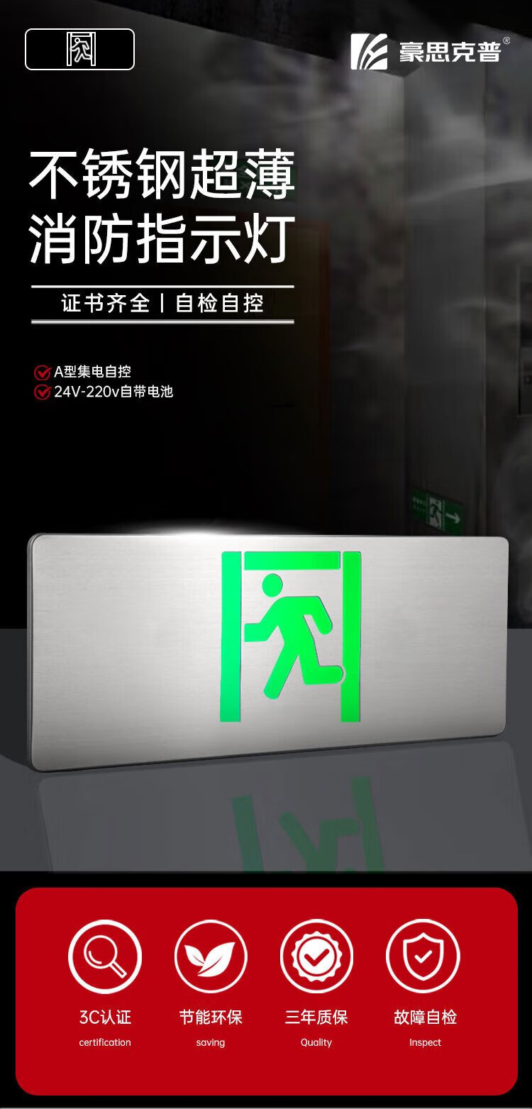Hauskop safety exit indicator light sign LED emergency evacuation sign floor fire emergency 3C fire certification stainless steel single-sided forward